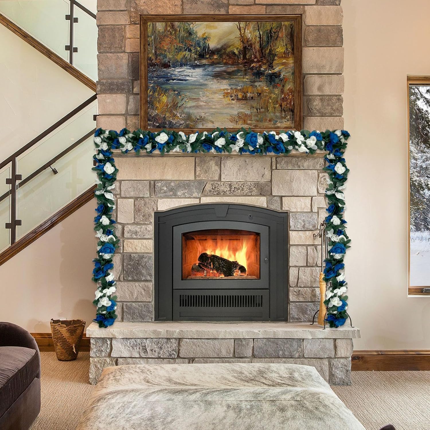 8Pcs 63Ft Royal Blue&White Fake Rose Hanging Flowers, Artificial Flower Vine, Hanging Floral Vine Garland for Wedding, Wall Arch, Halloween, Christmas Garden Backdrop Decor