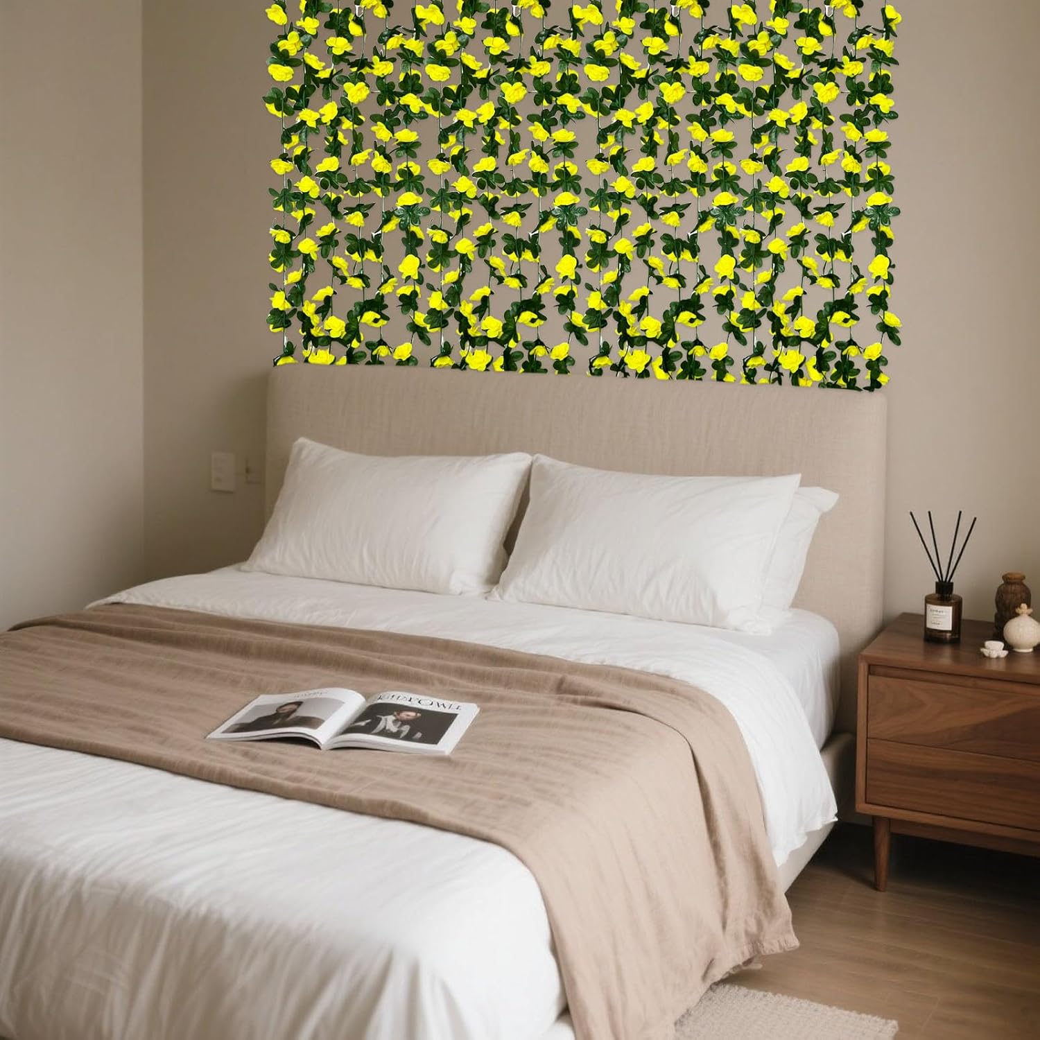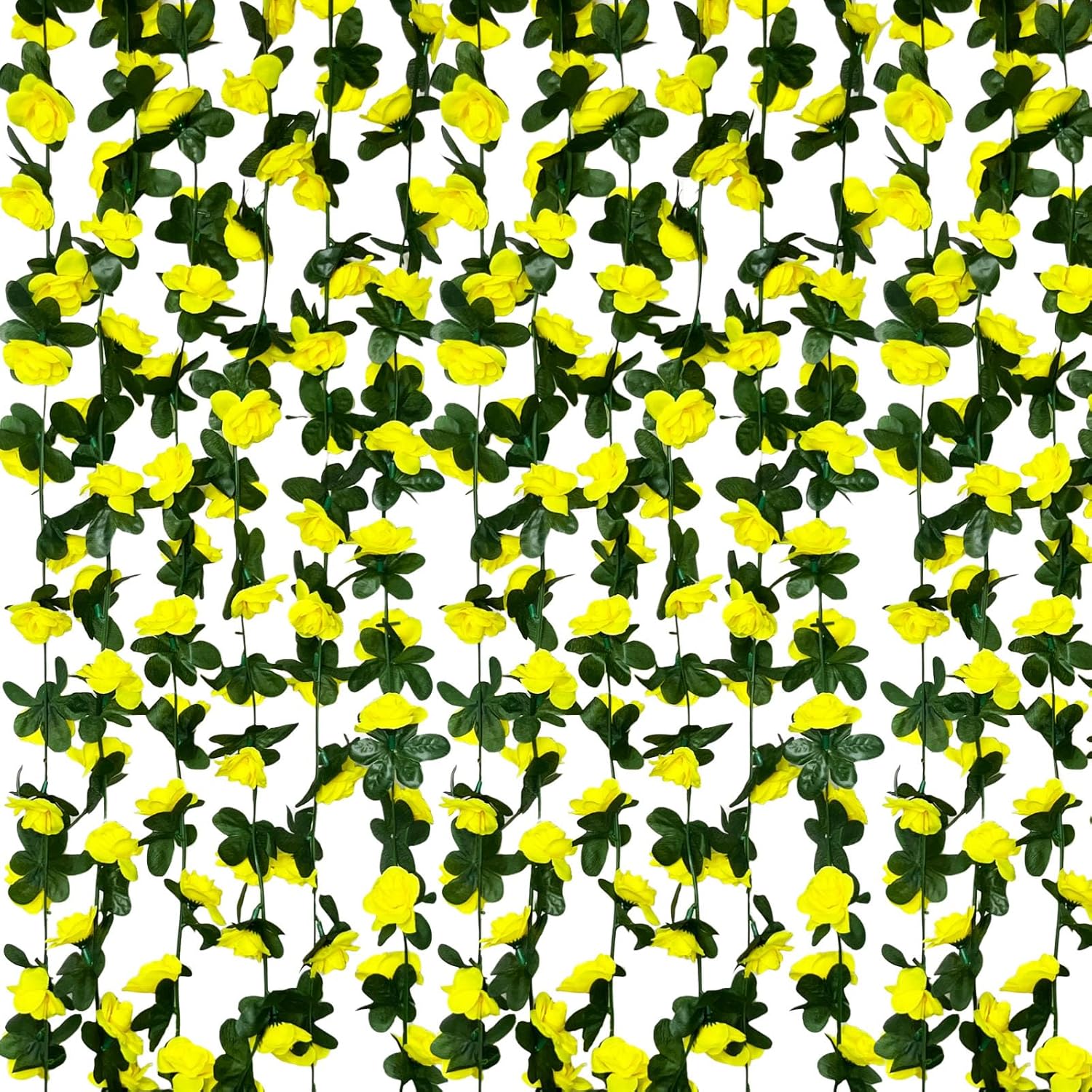 16Pcs 126Ft Yellow Rose Garland, Fake Rose Hanging Flowers, Artificial Flower Vine, Hanging Floral Vine Garland for Wedding, Birthday Party, Wall Arch, Halloween, Christmas Garden Backdrop Decor