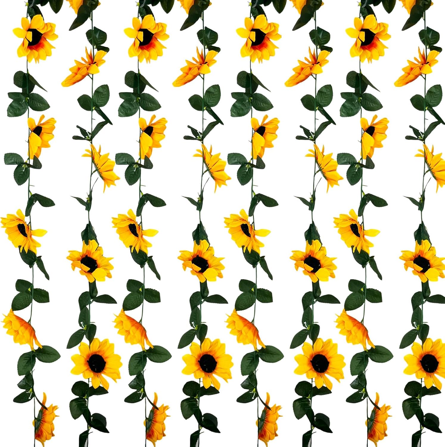 8Pcs 63Ft Sunflower Garland, Fake Hanging Flowers, Sunflower Artificial Flower Vine, Hanging Floral Vine Garland for Wedding, Party, Wall Arch, Halloween, Christmas Summer Garden Backdrop Decor