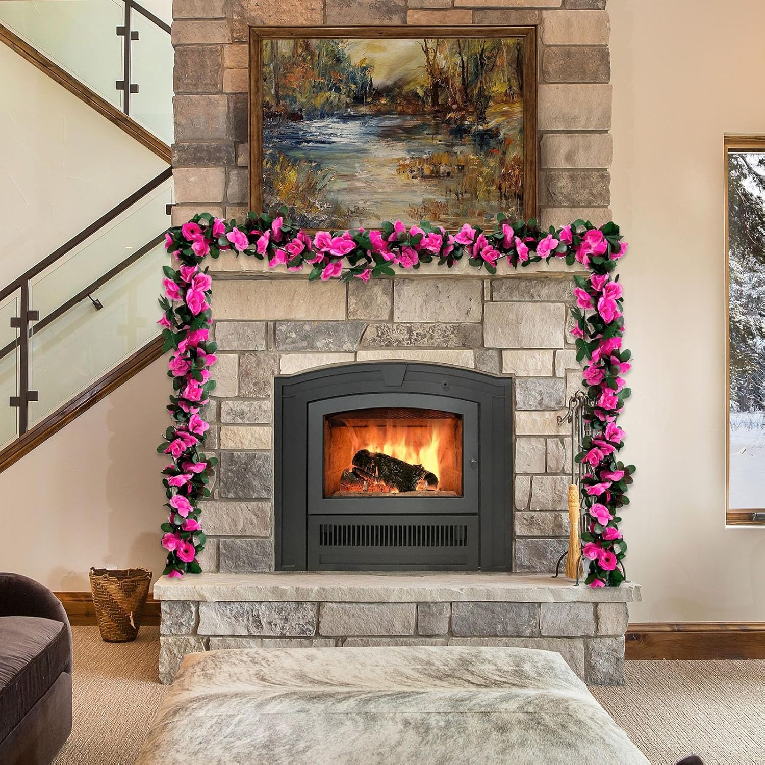 8Pcs 63Ft Fuchsia Rose Garland, Fake Rose Hanging Flowers, Artificial Flower Vine, Hanging Floral Vine Garland for Wedding, Birthday Party, Wall Arch, Halloween, Christmas Garden Backdrop Decor