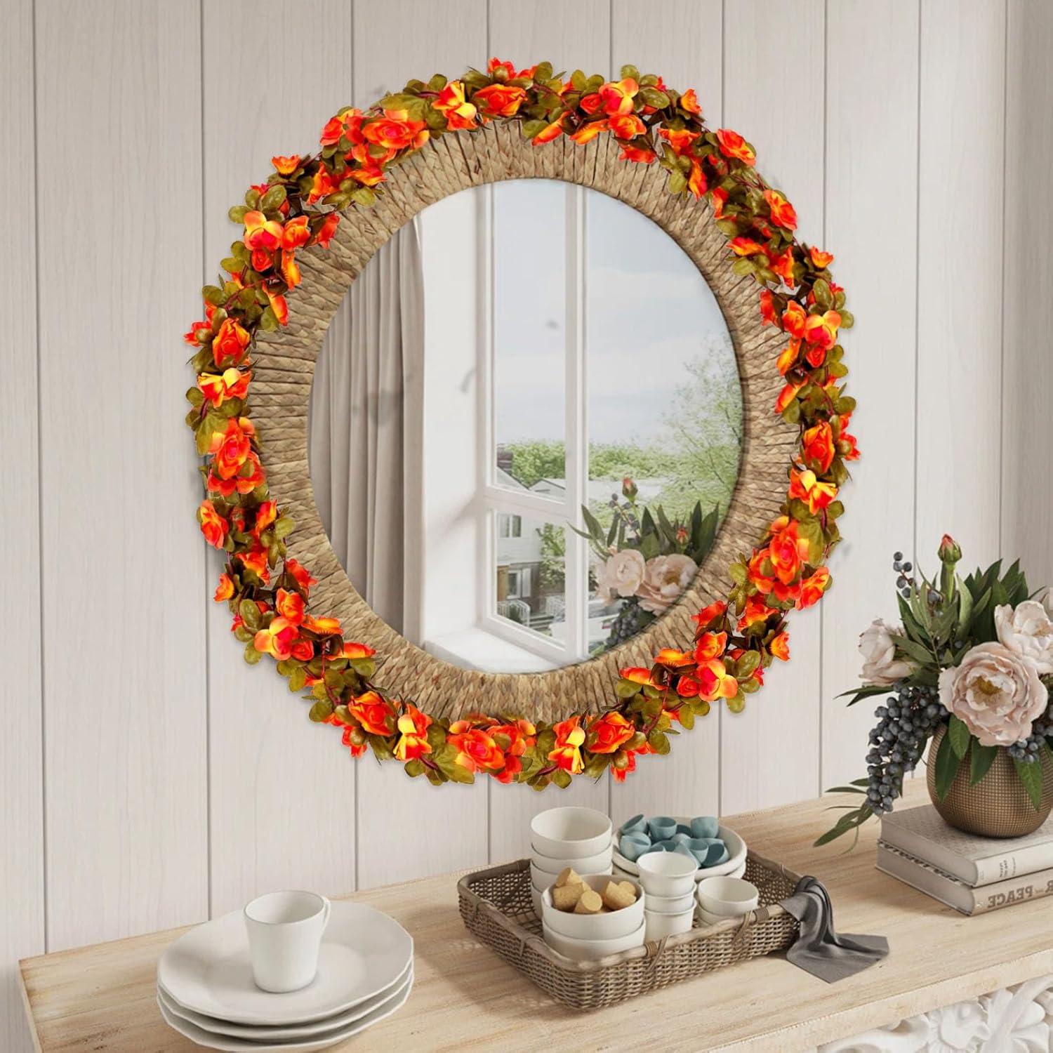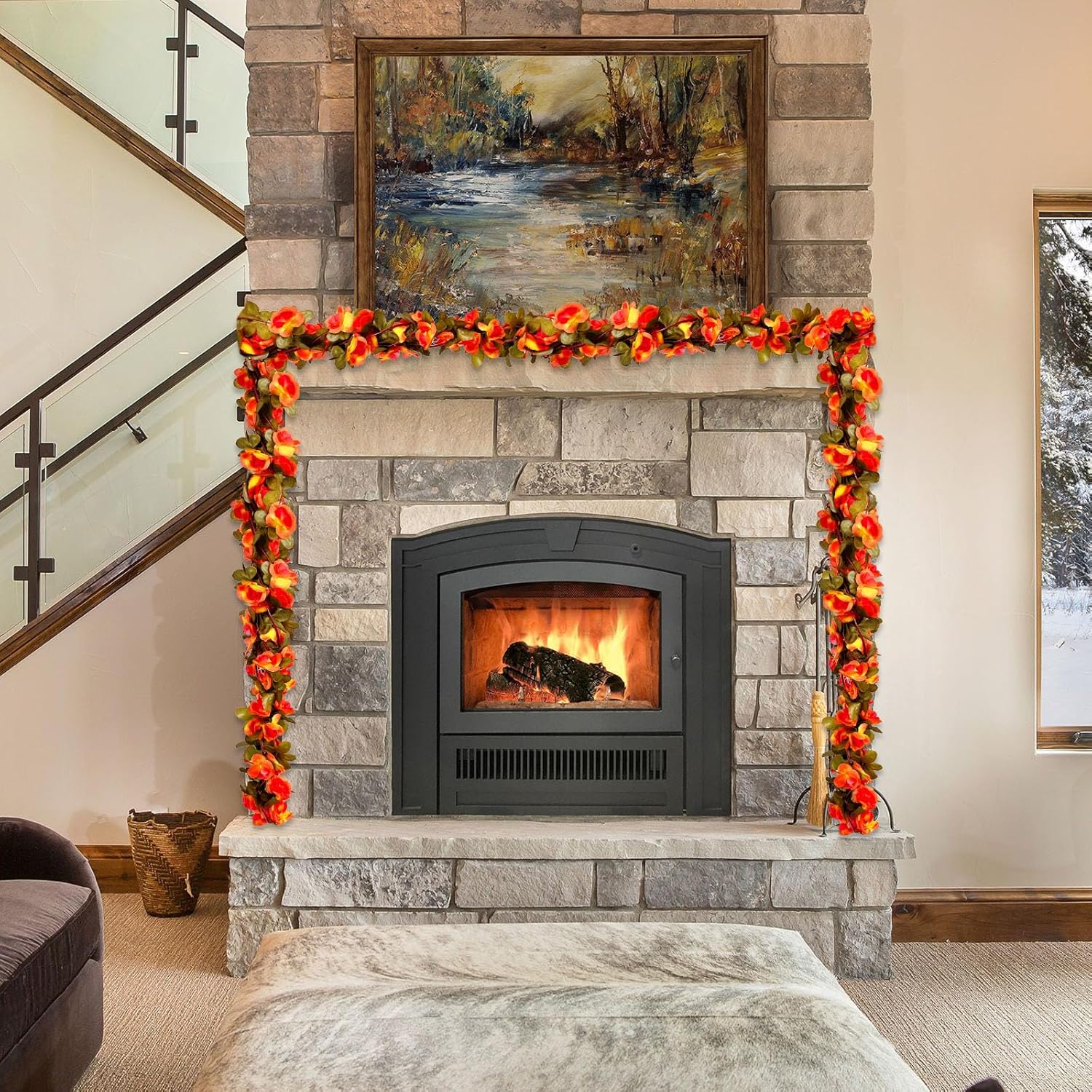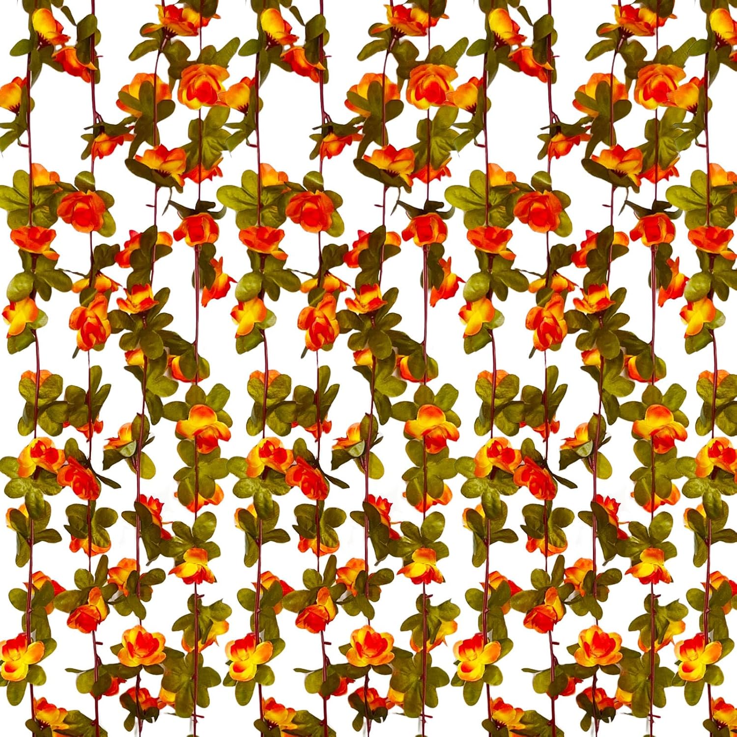 8Pcs 63Ft Orange Rose Garland, Fake Rose Hanging Flowers, Artificial Flower Vine, Hanging Floral Vine Garland for Wedding, Birthday Party, Wall Arch, Halloween, Christmas Garden Backdrop Decor