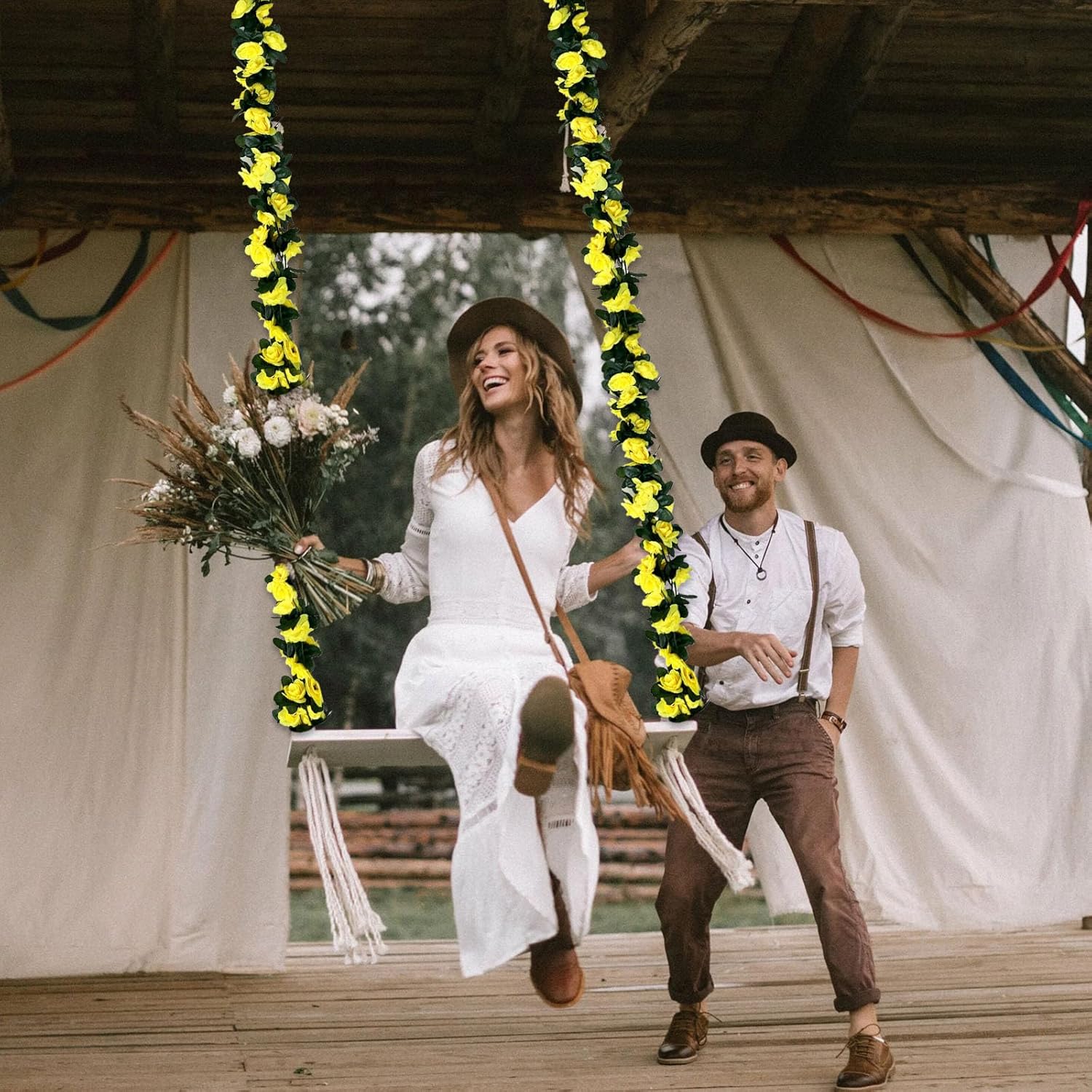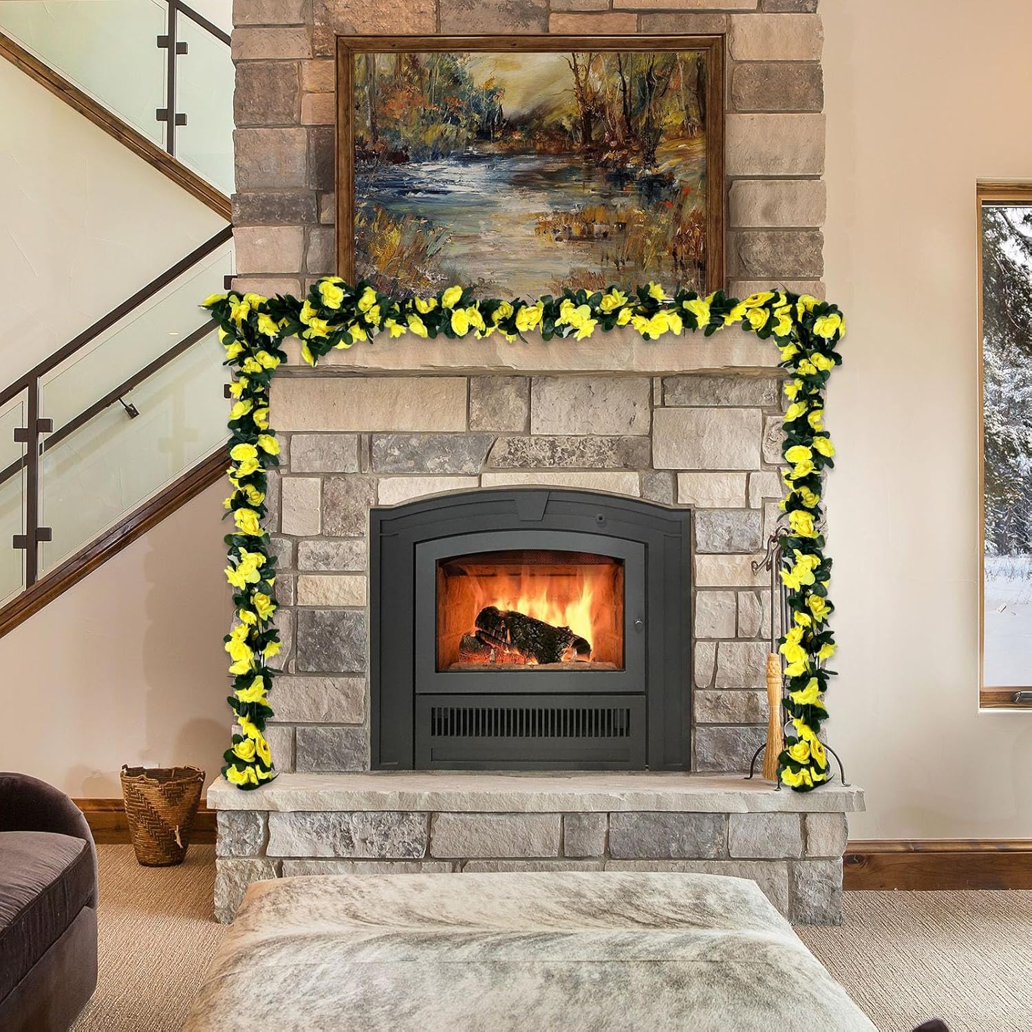 8Pcs 63Ft Yellow Rose Garland, Fake Rose Hanging Flowers, Artificial Flower Vine, Hanging Floral Vine Garland for Wedding, Birthday Party, Wall Arch, Halloween, Christmas Garden Backdrop Decor