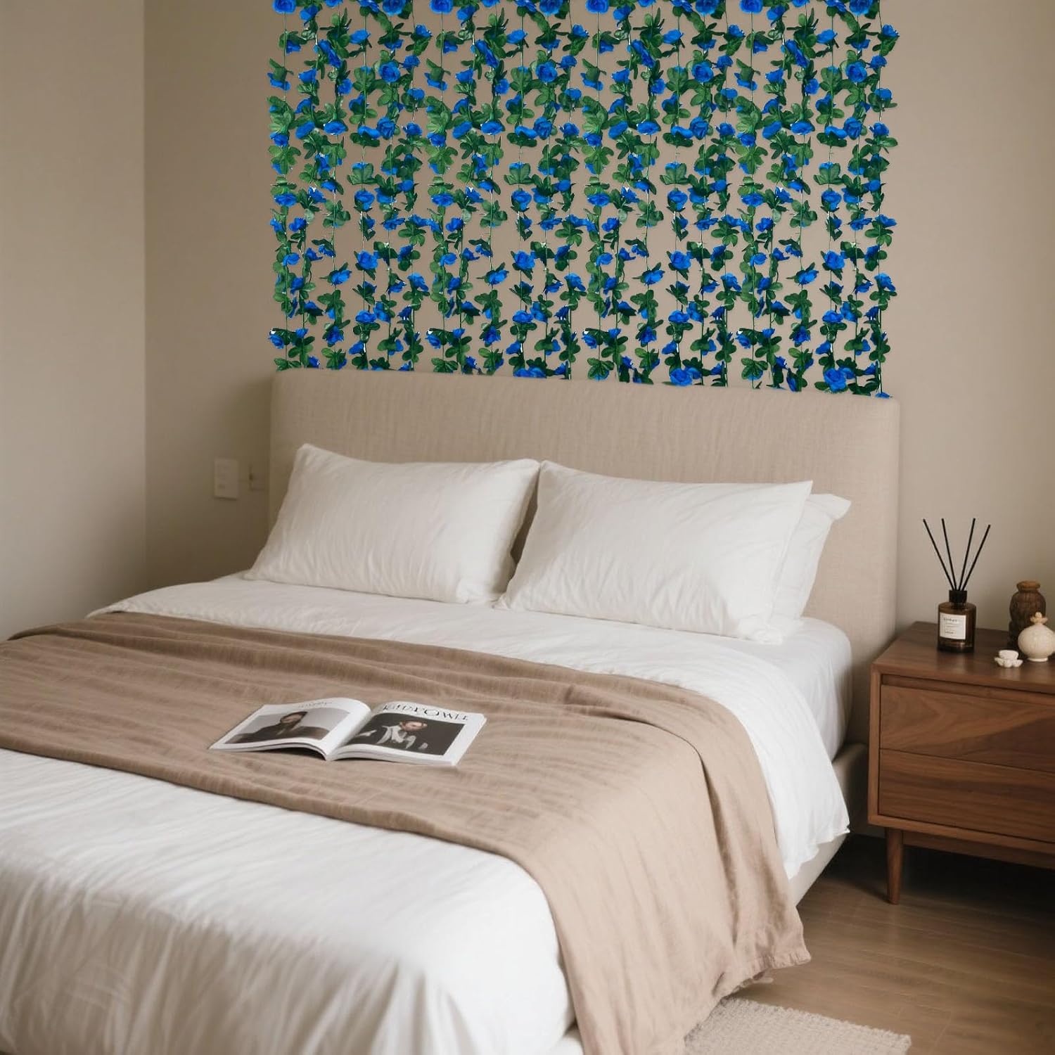 8Pcs 63Ft Royal Blue Rose Garland, Fake Rose Hanging Flowers, Artificial Flower Vine, Hanging Floral Vine Garland for Wedding, Birthday Party, Wall Arch, Halloween, Christmas Garden Backdrop Decor