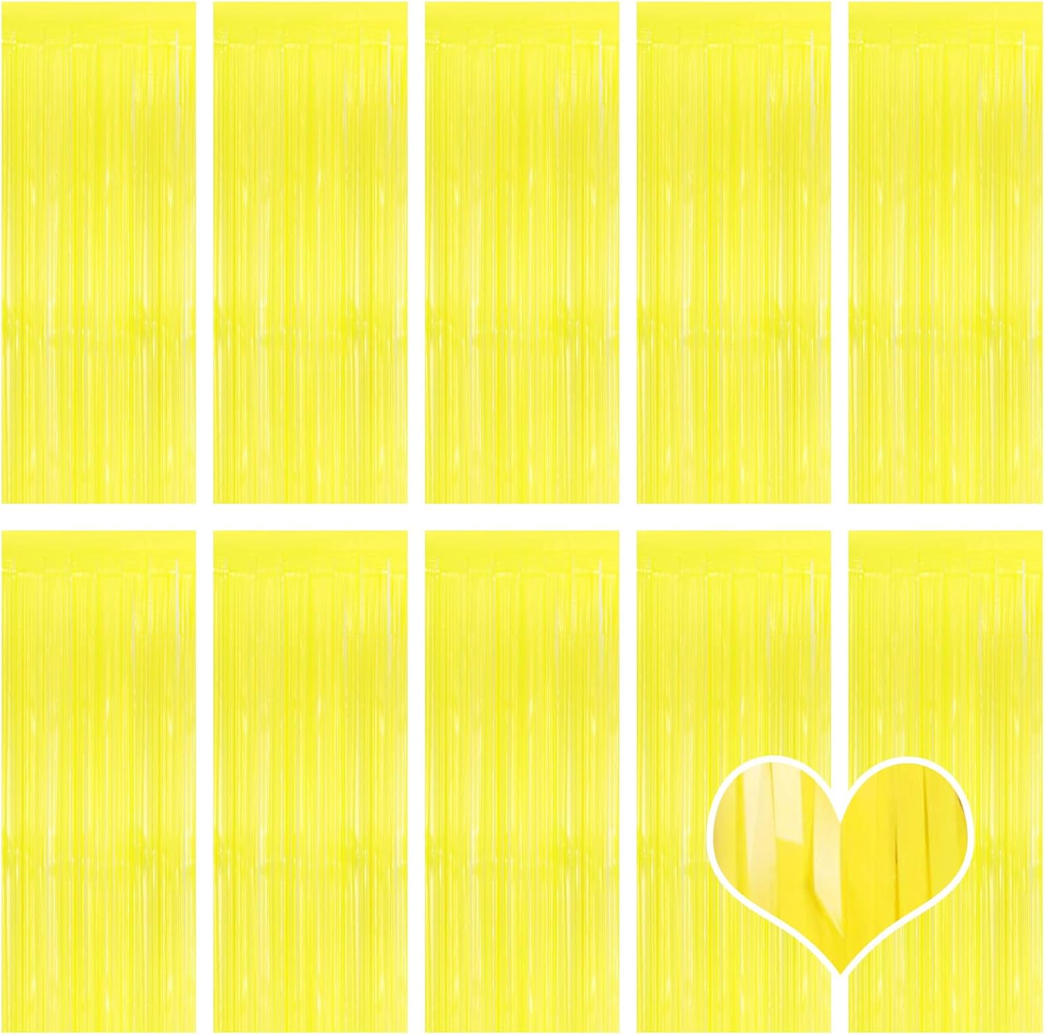10 Pack Yellow Foil Curtain Backdrop 3.2ft x 8.2ft Macaron Tinsel Foil Fringe Curtains Streamer Photo Booth Backdrop for Birthday Party Baby Shower Engagement Wedding Holiday Decor (Macaron Yellow)