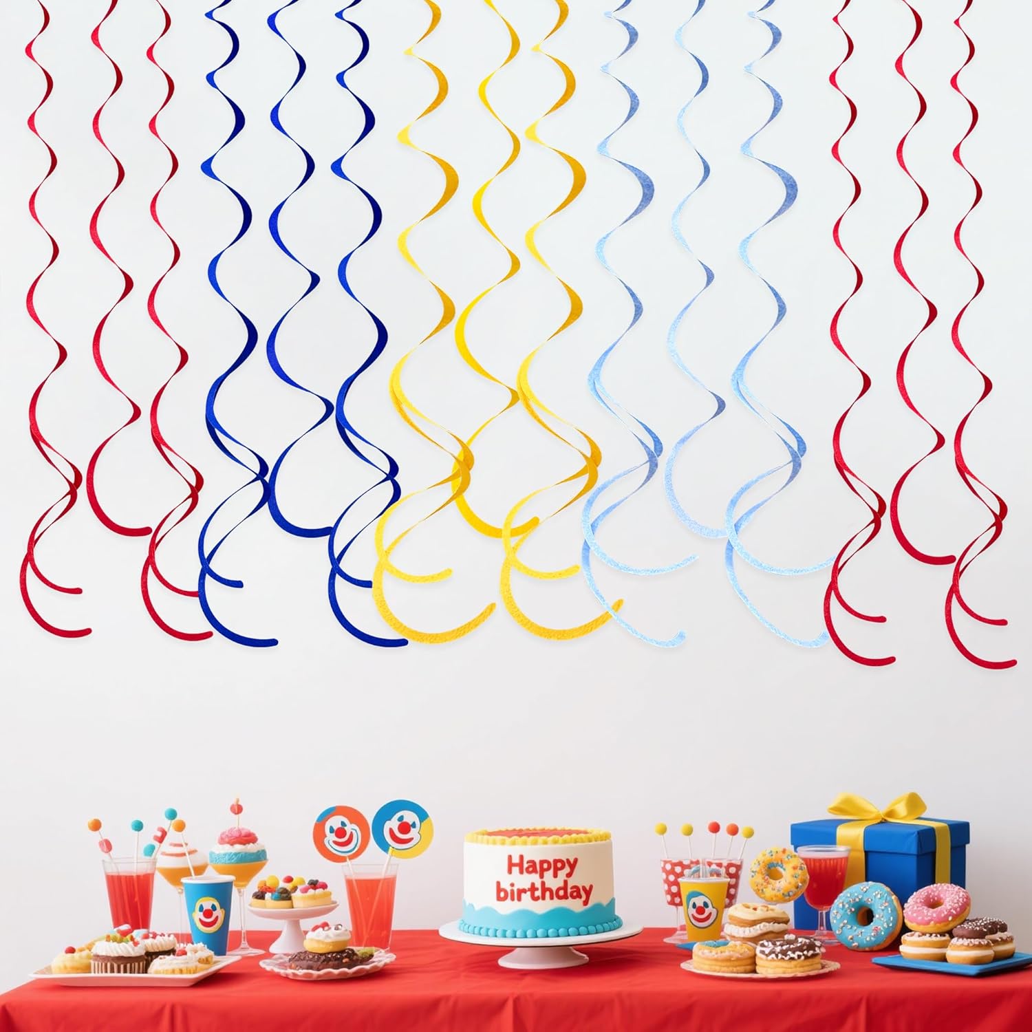 36 Pcs Red Blue Yellow Hanging Swirl Decorations Colorful Felt Swirl Streamer Spiral Ceiling Decorations Garland for Carnival Circus Clown Fiesta Festival Birthday Baby Shower Wedding Party Supplies