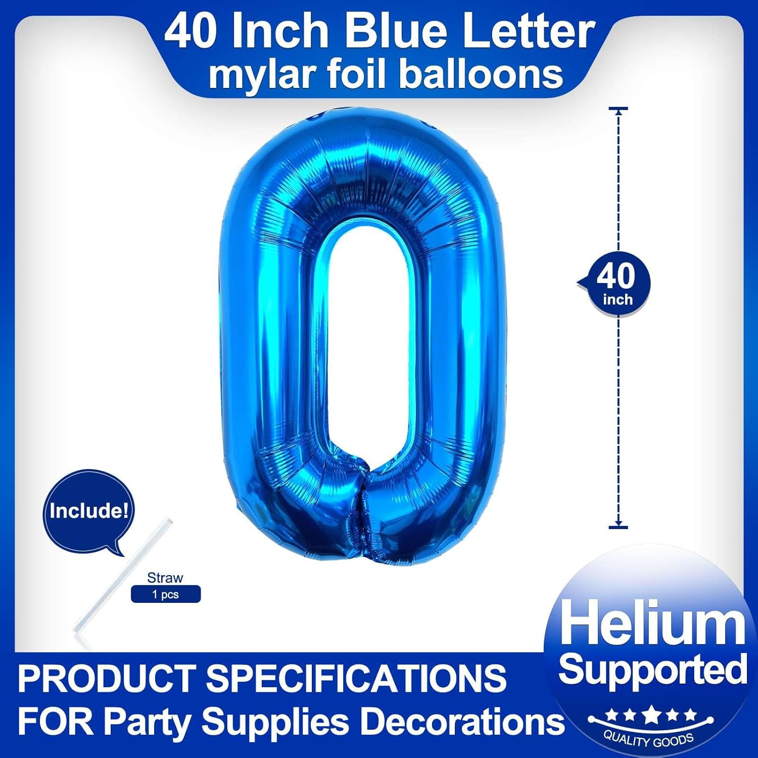 - Package included:One Blue Letter O Balloon*1,straw*1,40 inch Blue letter balloon