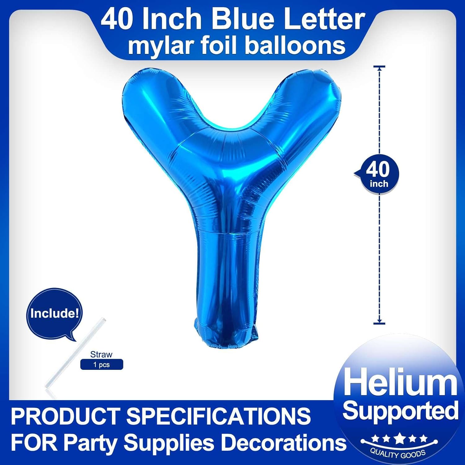 - Package included:One Blue Letter Y Balloon*1,straw*1,40 inch Blue letter balloon