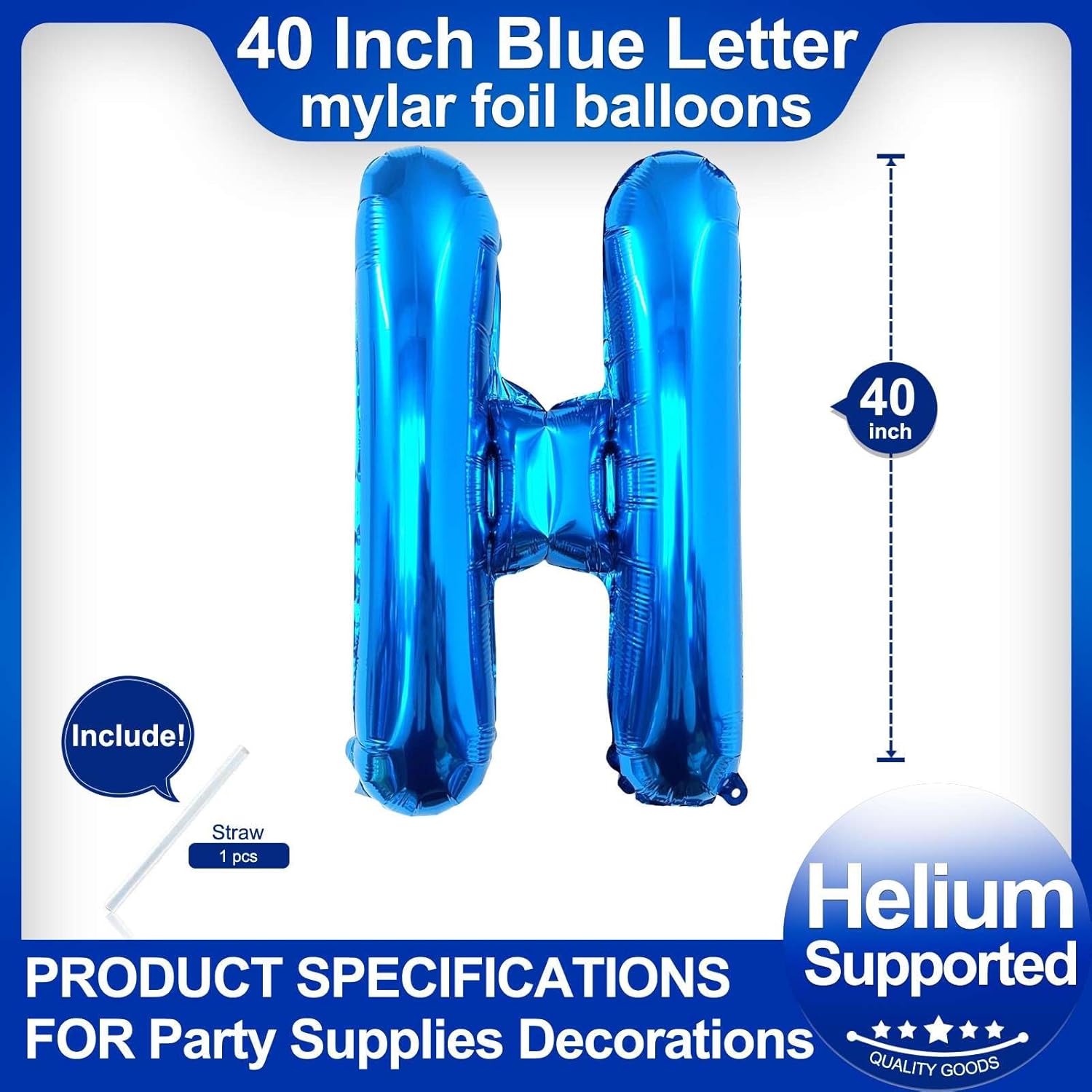 - Package included:One Blue Letter H Balloon*1,straw*1,40 inch Blue letter balloon