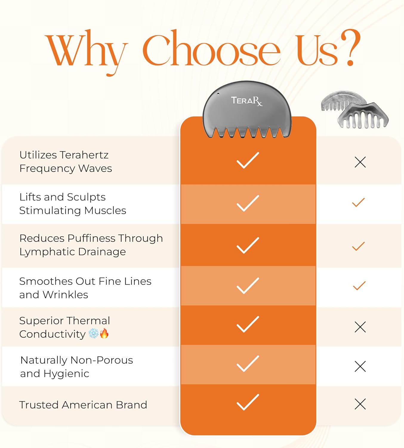 - QUALITY ASSURANCE: TeraRX, a trusted American brand, is committed to delivering excellence with every purchase of our terahertz gua sha comb. We take pride in the quality of our products and are here to assist you with any questions or concerns. Experience the TeraRX difference—order today and enjoy the confidence that comes with choosing quality.