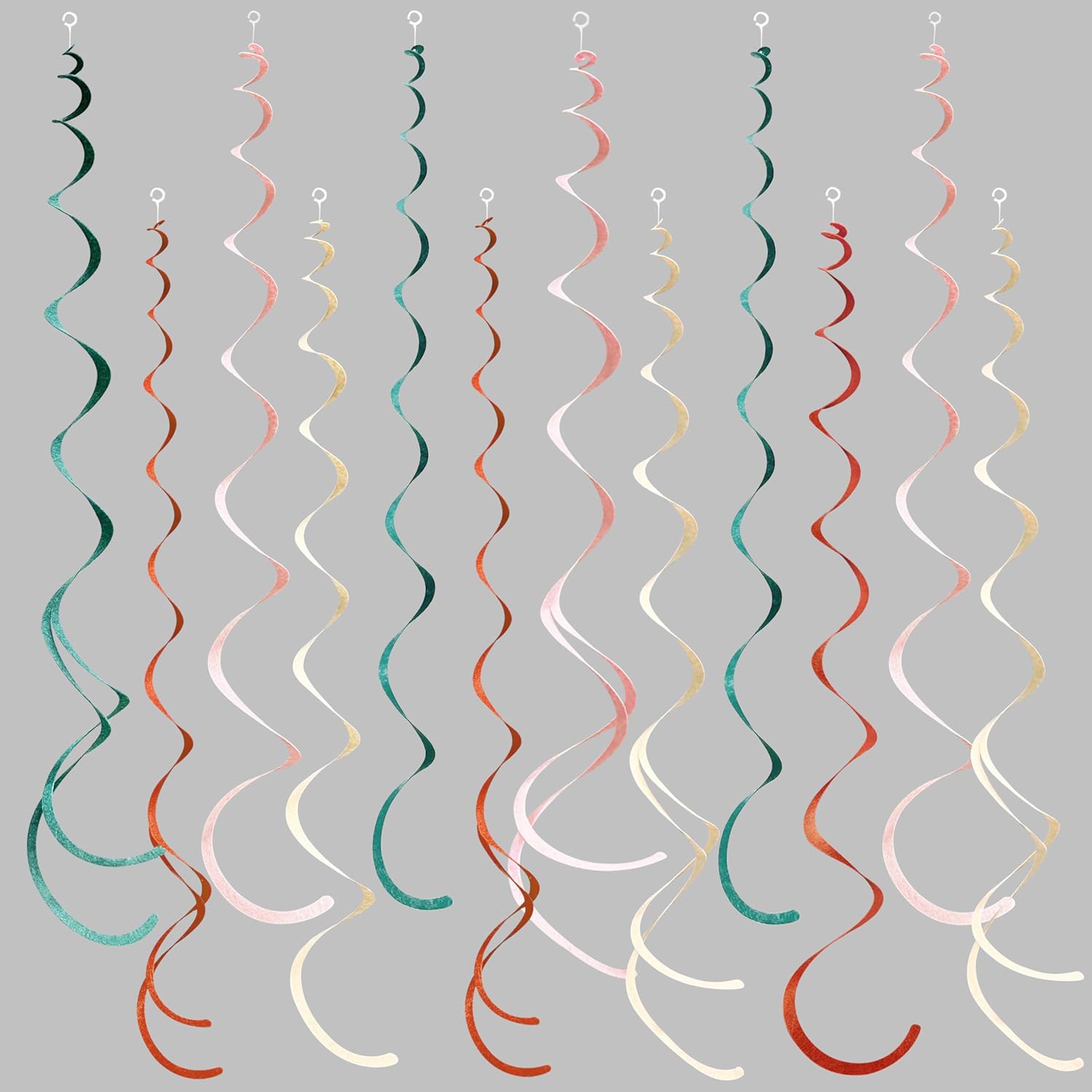 - Package Contains - 36 packs of boho color swirl party streamer,Each swirl can extends to approximately about 2.62 feet long,Meeting daily general needs.Comes with 40 plastic hooks for hanging.