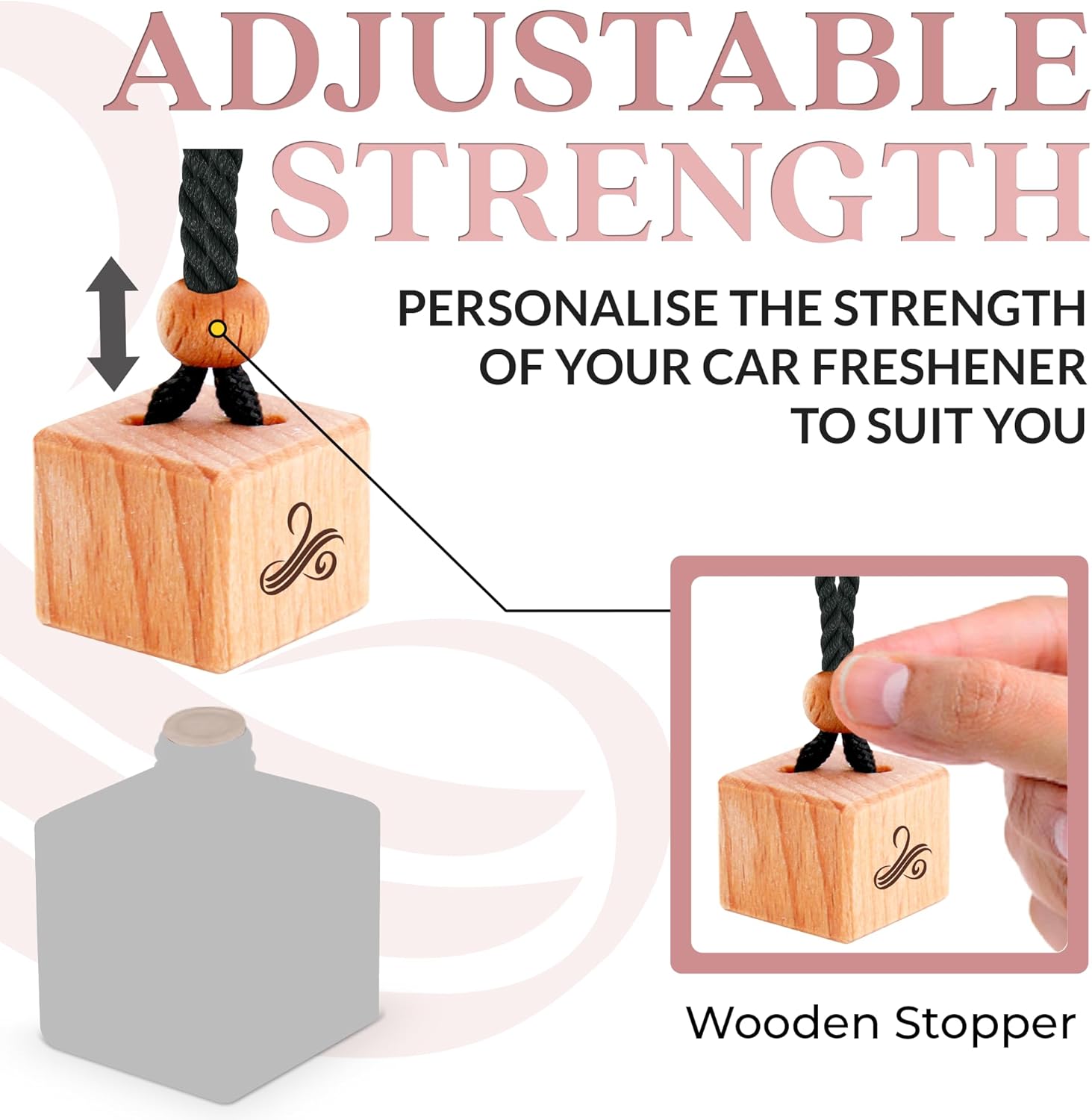 - ADJUST THE STRENGTH TO SUIT YOU - Take control of your air freshener diffuser for car and personalize your driving experience. This air freshener car hanging and customizable car perfume diffuser allows you to set the intensity of your car scents—simply slide the wooden stopper up or down the diffuser cords to match your mood or preference. Your car, your fragrance, your rules.