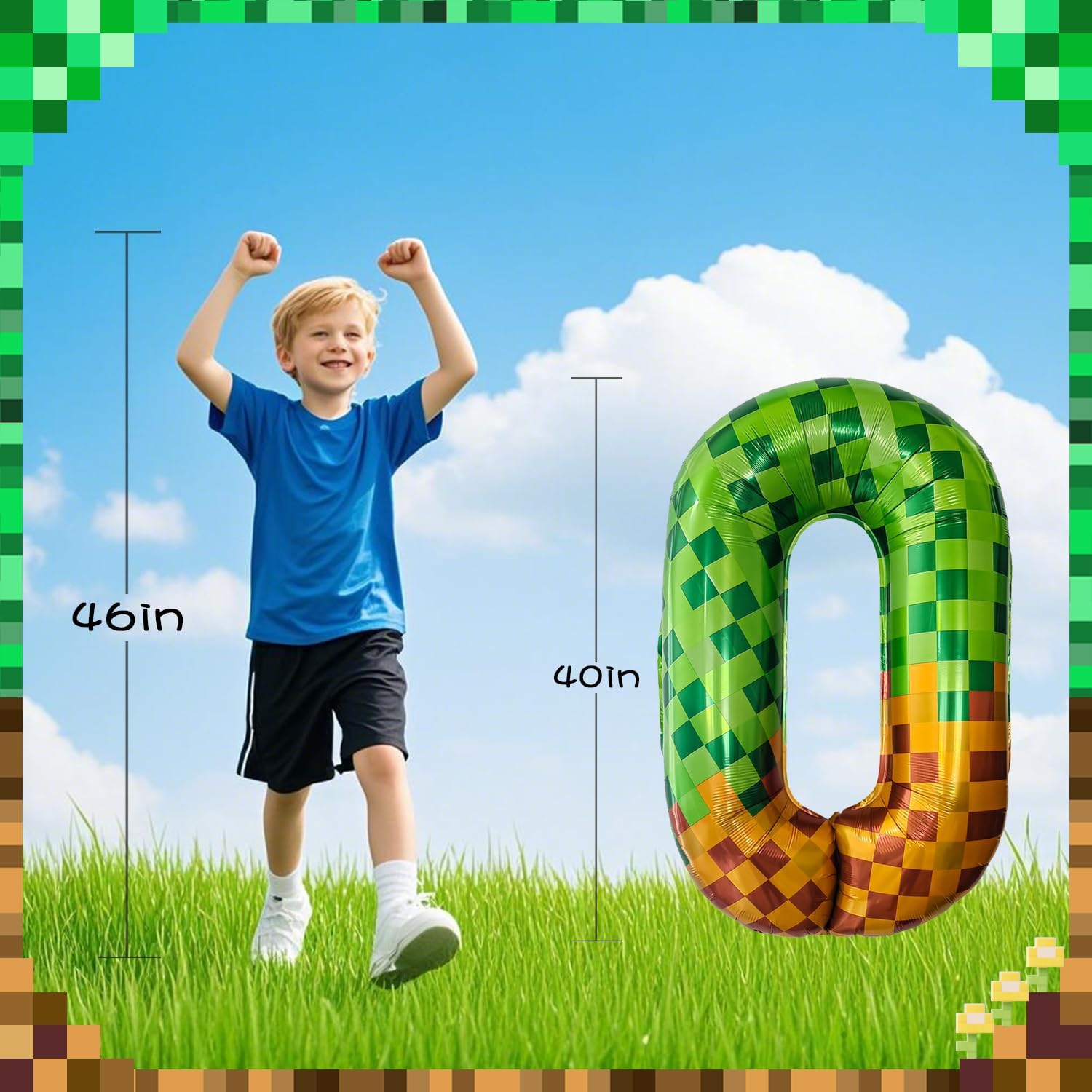 Pixel & TNT Theme 40in Giant Number Balloons - Foil Mylar Birthday Party Decorations for Kids Adults Cumpleaños, Block Style Pixel Art Shape Balloon Decor Supplies (Pixel, Number 0)