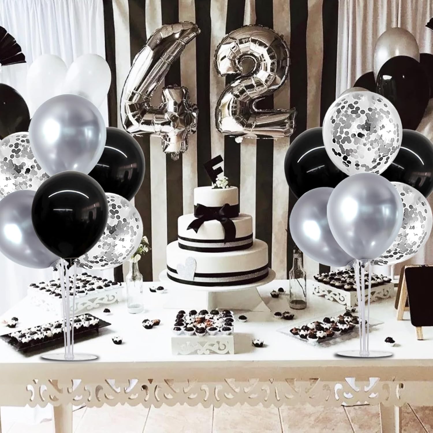 TONIFUL 4 Set Black and Silver Balloons Stand Centerpiece Table Decorations for Birthday, Baby Shower, Wedding, Halloween and Anniversary Party Decorations Graduations