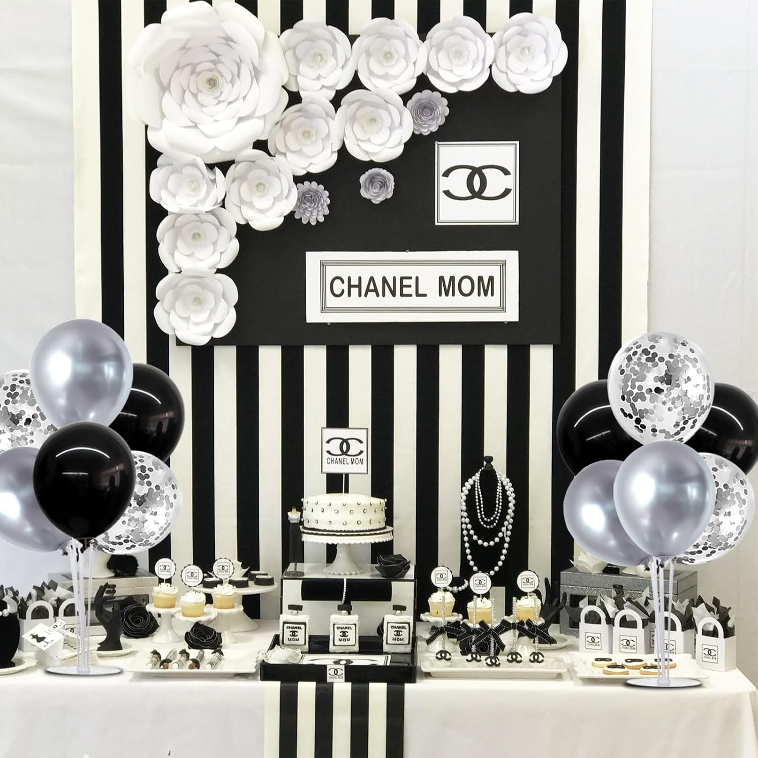 - Package Includes: The balloon arch kit includes 4 reusable balloon stands and 12 inch 32 pcs black and silver balloons(9 black balloons,14 silver balloons and 9 silver confetti balloons),glue point dots,balloon pump,balloon clips,and tie tool.You don’t need to waste money to buy balloons