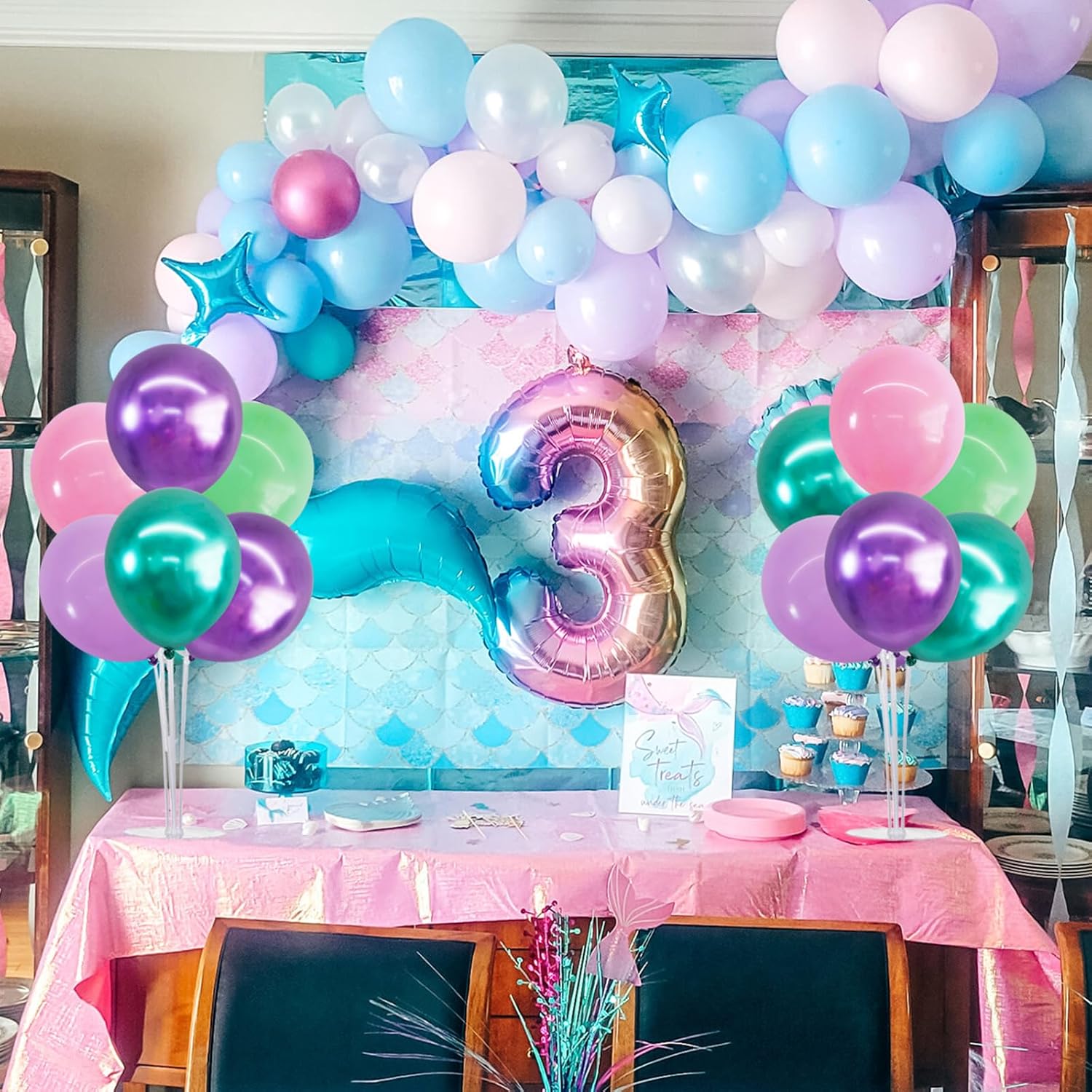 TONIFUL 4 Set Metallic Purple Pink Green Balloon Stand Centerpiece Table Decorations for Girls Mermaid Birthday Party Decoration,Baby Shower, Summer Luan Party, Under The Sea Party Decorations