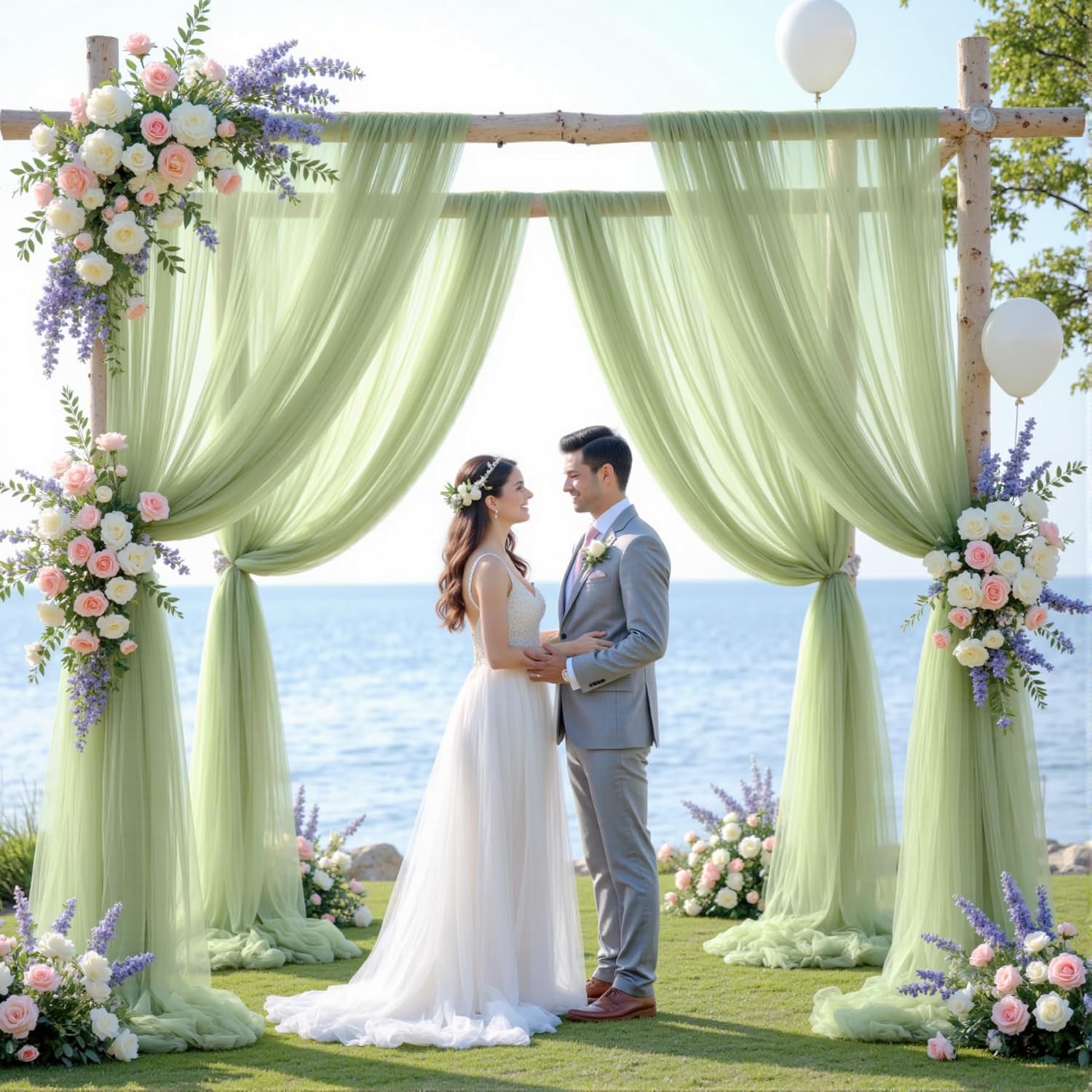 - Best Choice Wedding Arch: Package includes 2 panels sage green wedding arch sheer drapes, each panel is 30 inches wide and 19 ft long. The drape of the fabric is perfect for use in a wedding arbor. These arch fabric add a pretty touch to pillars at a wedding.