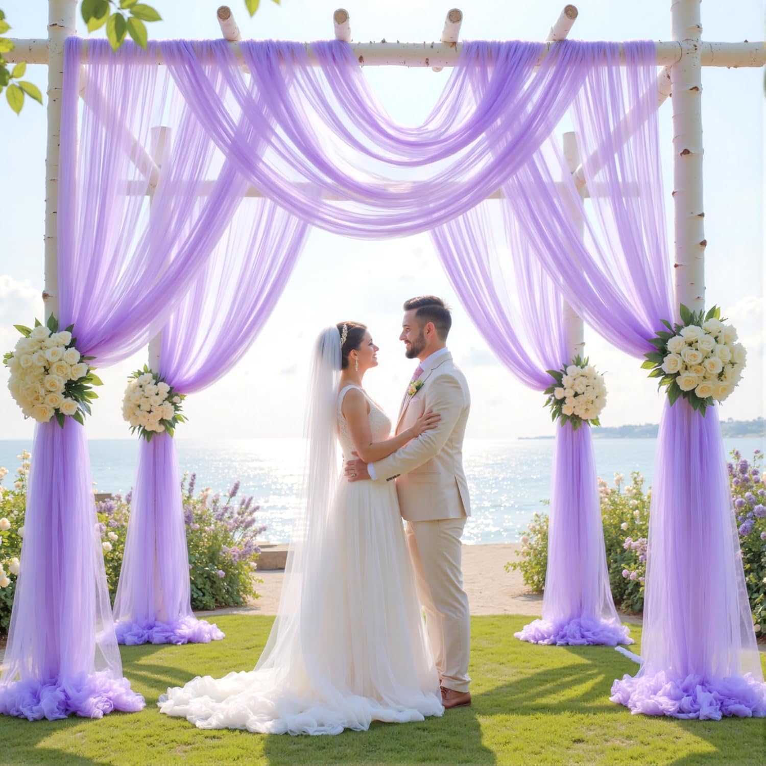 - Best Choice Wedding Arch: Package includes 1 panel purple wedding arch sheer drapes, each panel is 60 inches wide and 26 ft long. The drape of the fabric is perfect for use in a wedding arbor. These arch fabric add a pretty touch to pillars at a wedding.