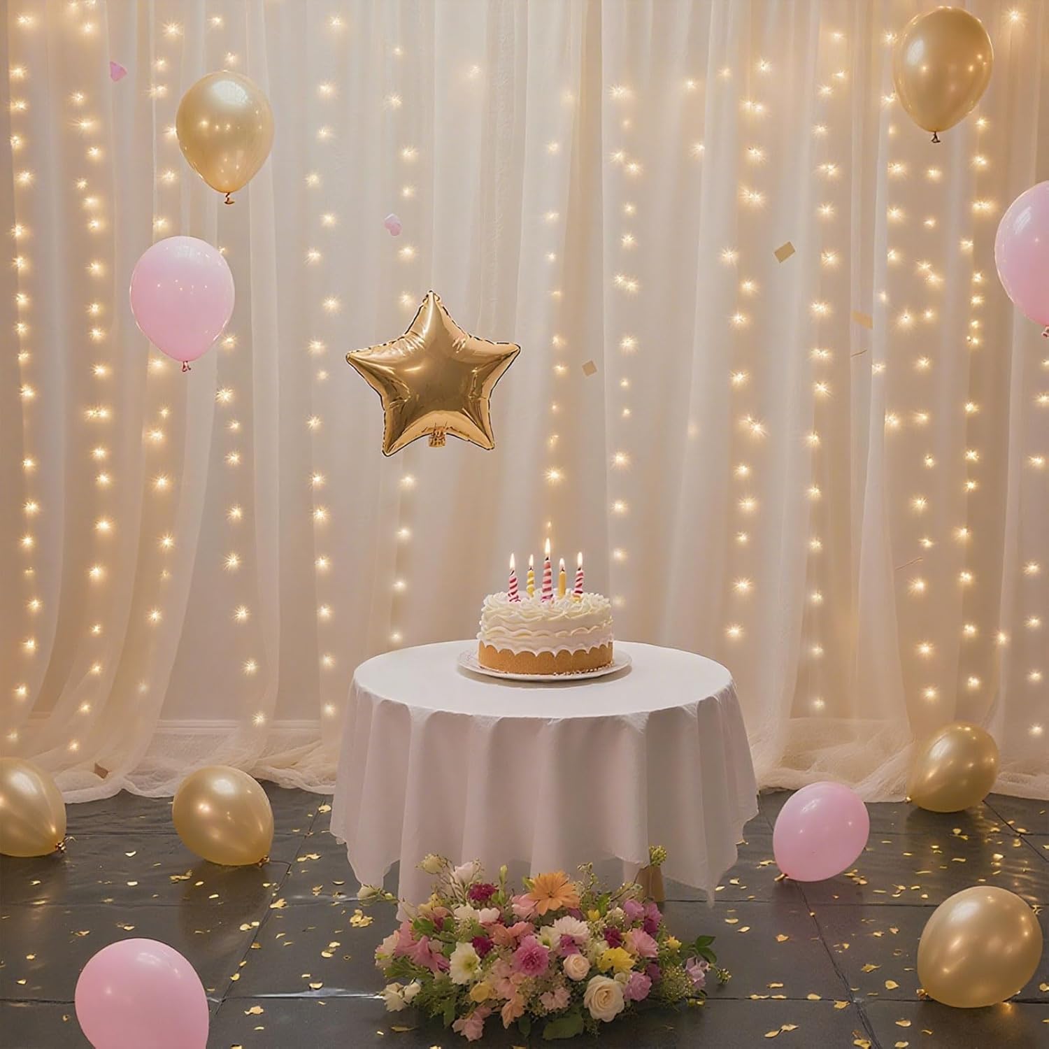 - 【Durable & Reusable for Lasting Use】Experience peace of mind with our high-quality soft tulle and well-constructed string lights. These background curtains are lightweight, wrinkle-resistant, durable, not prone to discoloration, easy to store and do not take up much space. These USB-powered light curtain background machines have stable performance. It can be perfectly matched with any activity and remain as good as new even after multiple uses.