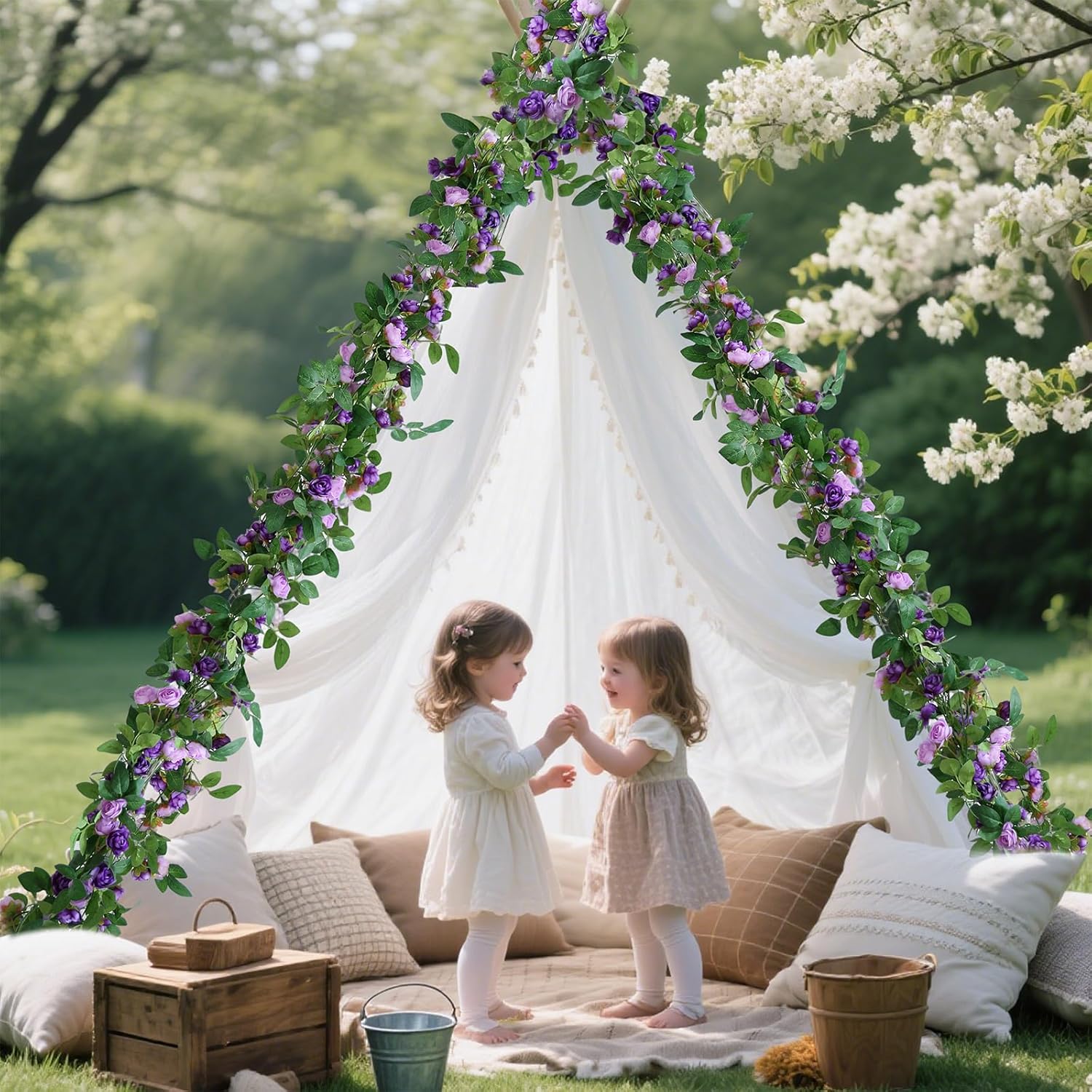 - 📏 【Lush, Full Design 180+ Flowers & 800+ Leaves】Each vine is densely packed with 45 flowers & 200+ leaves. The full set provides a luxurious, professional effect. Perfect for creating a dramatic impact on arches and backdrops.