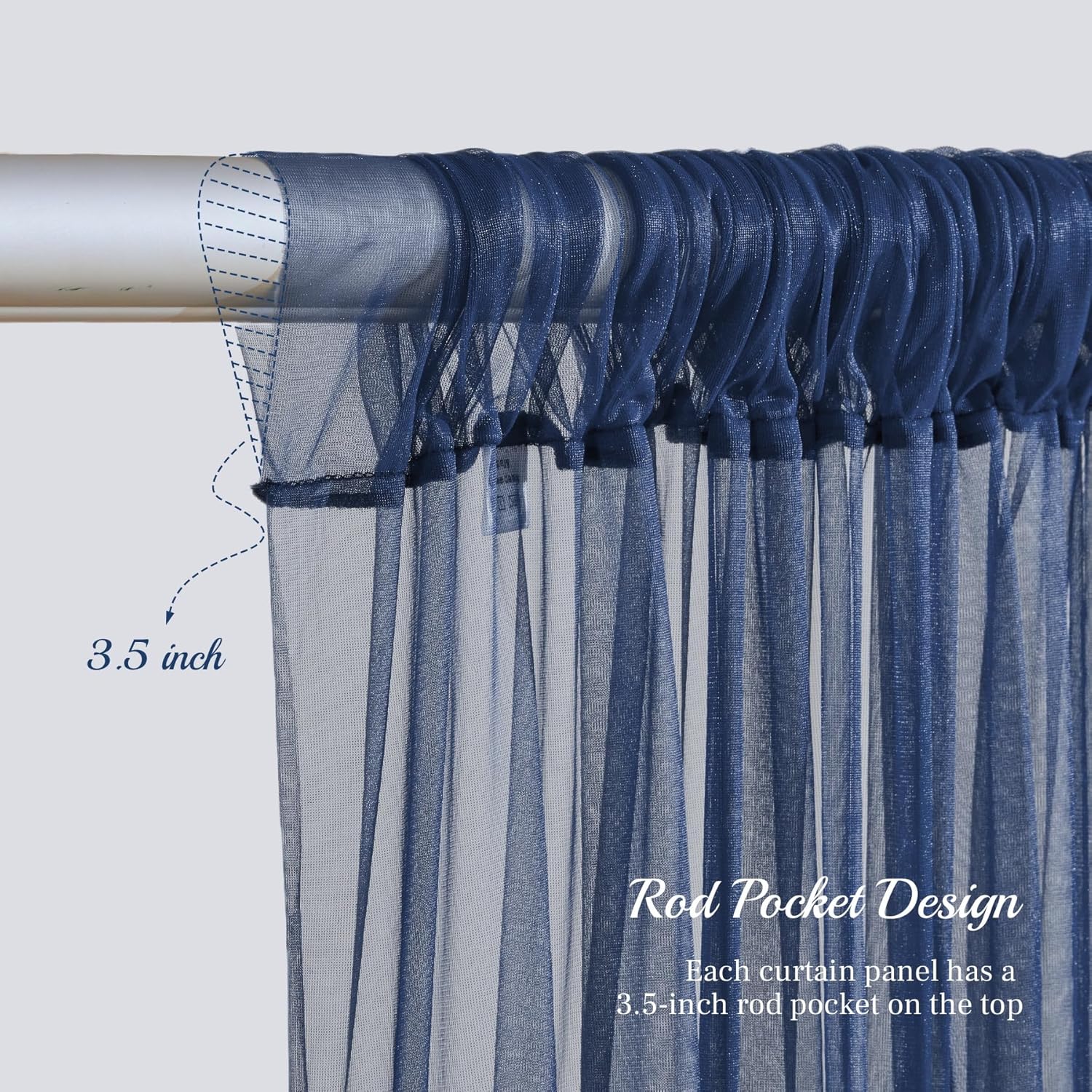 - 【Elegant Sheer Draping Fabric】Our navy backdrop curtain are crafted from high-quality delicate soft and smooth tulle.The fabric is so dreamy. It's like a semi sheer dress that flows in the wind, so romantic. And it's also lightweight to wear, the wind was able to blow it for a dramatic effect.
