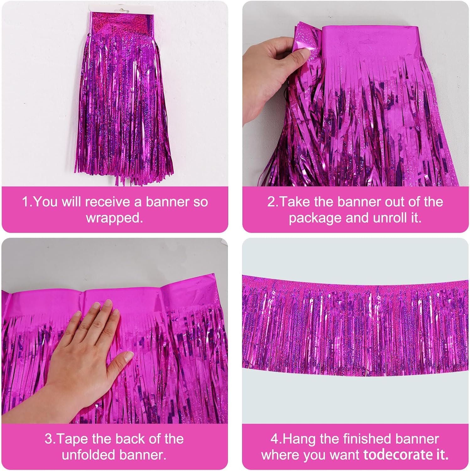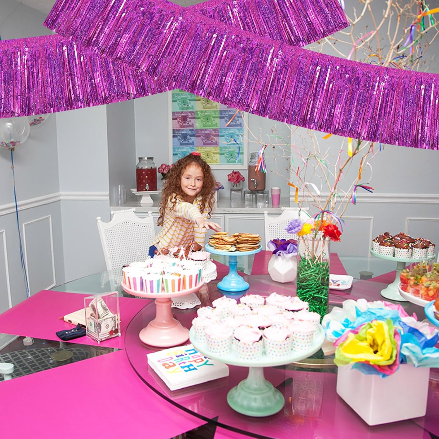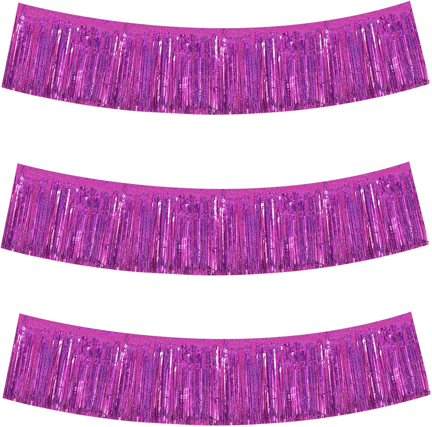 BEISHIDA 3 Packs Metallic Foil Fringe Garland Laser Rose Red Wall Hanging Tinsel Fringe Banners for Car Floats Bridal Shower Wedding Birthday Easter Graduation Holiday Party Decoration(30 Feet)