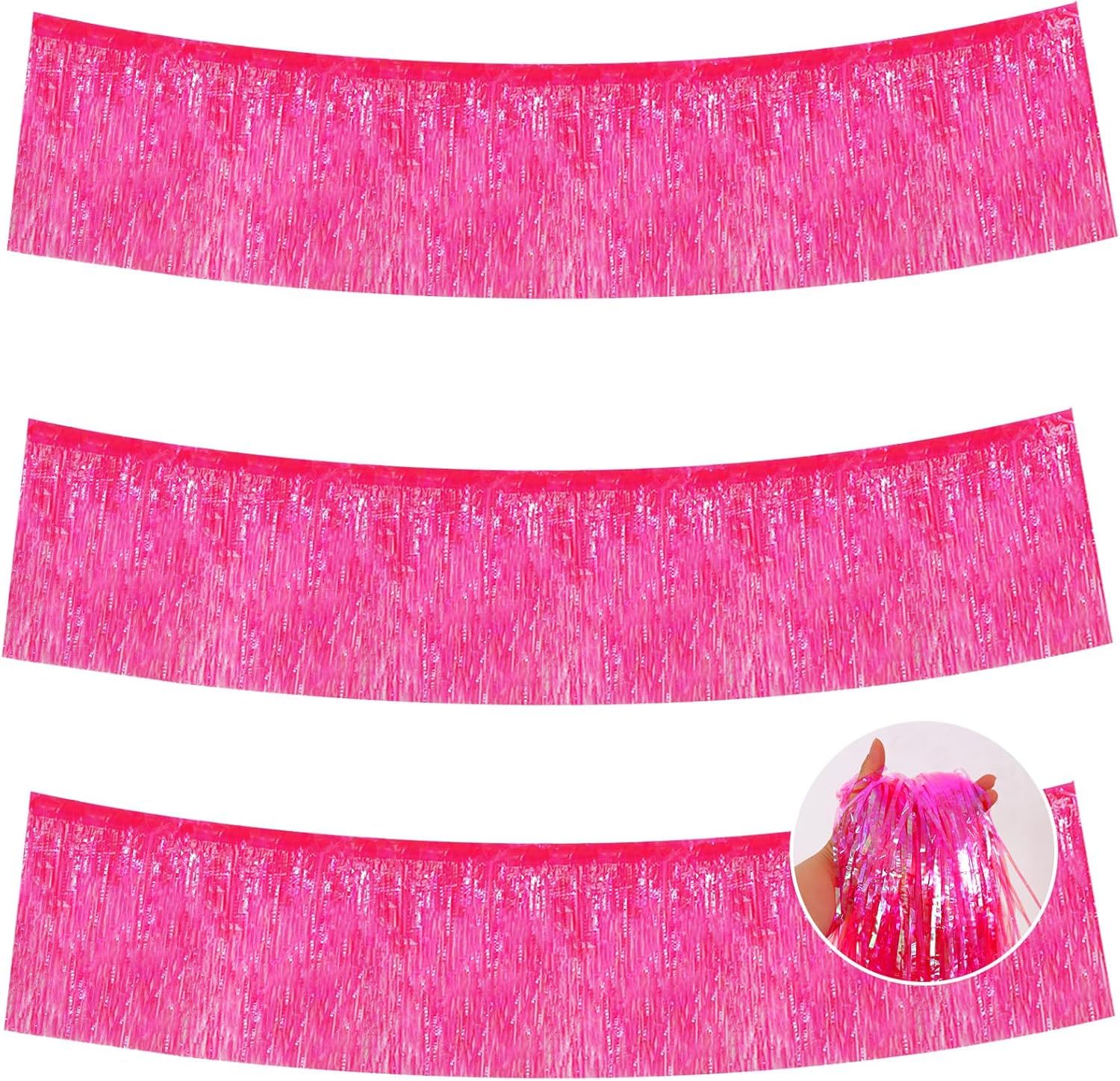 BEISHIDA 3 Packs Metallic Foil Fringe Garland Shining Dark Pink Wall Hanging Tinsel Fringe Banners for Car Floats Bridal Shower Wedding Birthday Easter Graduation Holiday Party Decoration(30 Feet)