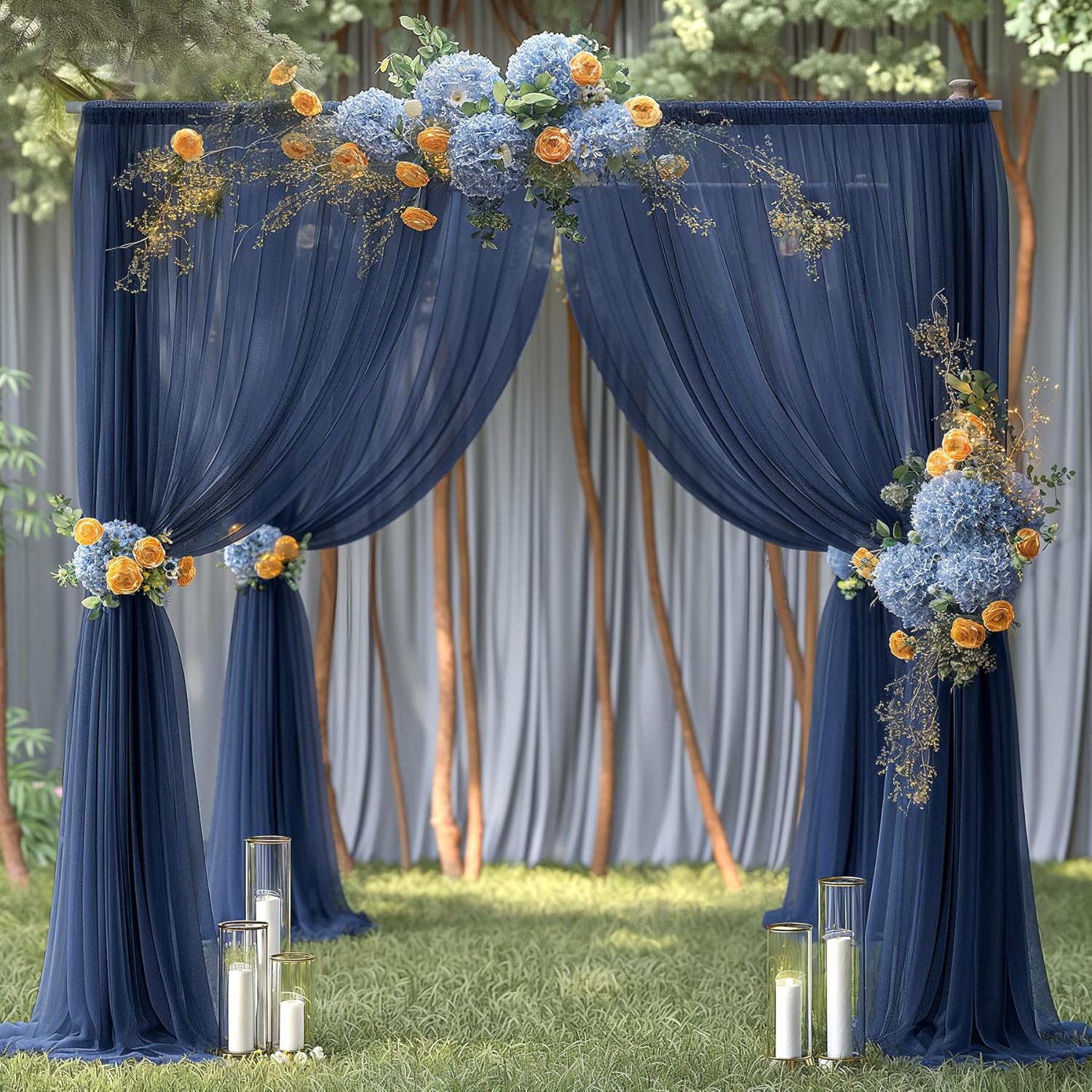 - 【Multiple Use Light Curtain Backdrop】These navy blue sheer backdrop curtains are applicable for any indoor and outdoor occasions. Perfect for weddings arch, receptions, parties, bridal and baby showers, birthdays, candy buffets, dessert tables background, trade shows, wedding stages photography, photo booths, ceremony and more.