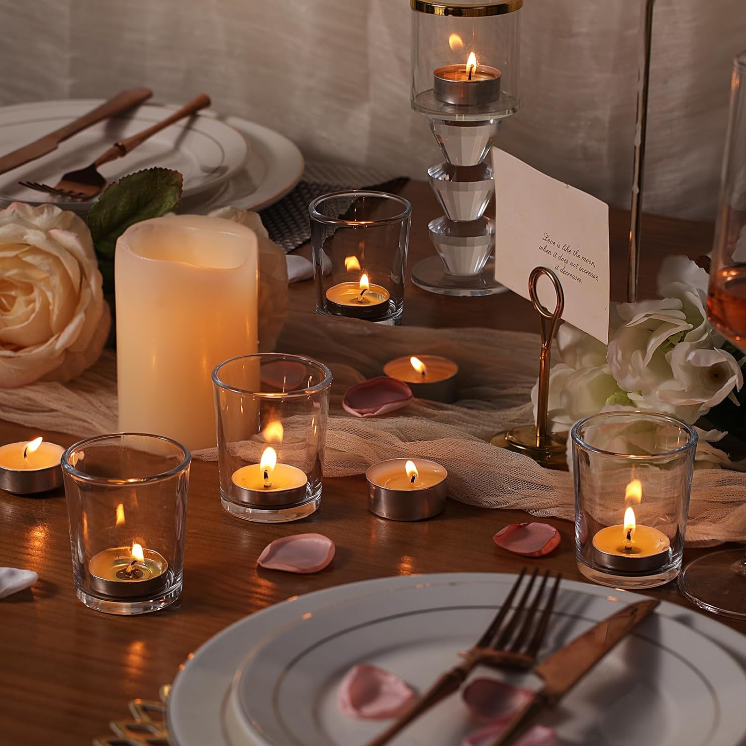 - ❤️❤️[ Complete Candle Set - Ready to Use]❤️❤️: You will receive 12 clear votive candle holders and 12 tea light candles in the packaging, a total of 24 pieces. All in one solution includes premium glass candle holder and tea lights, no separate purchases.