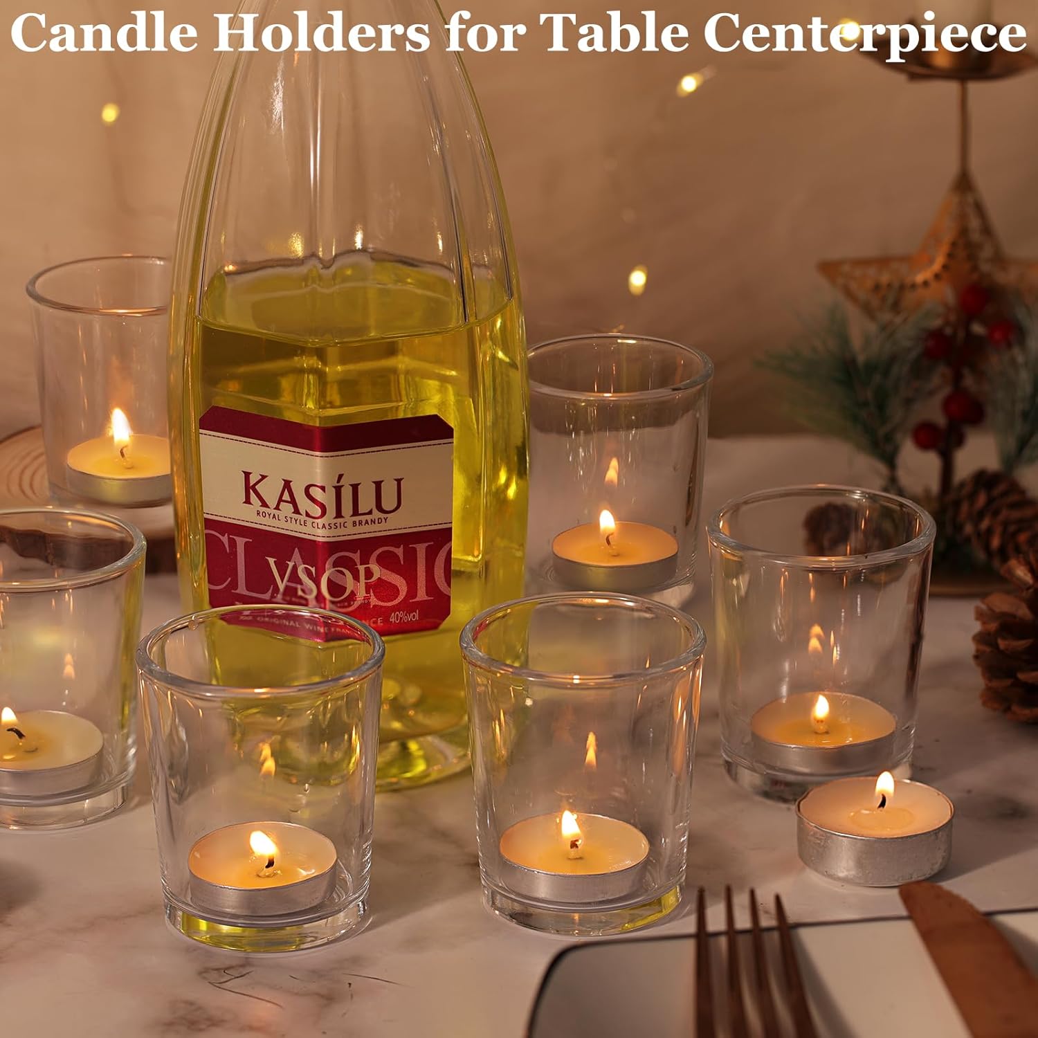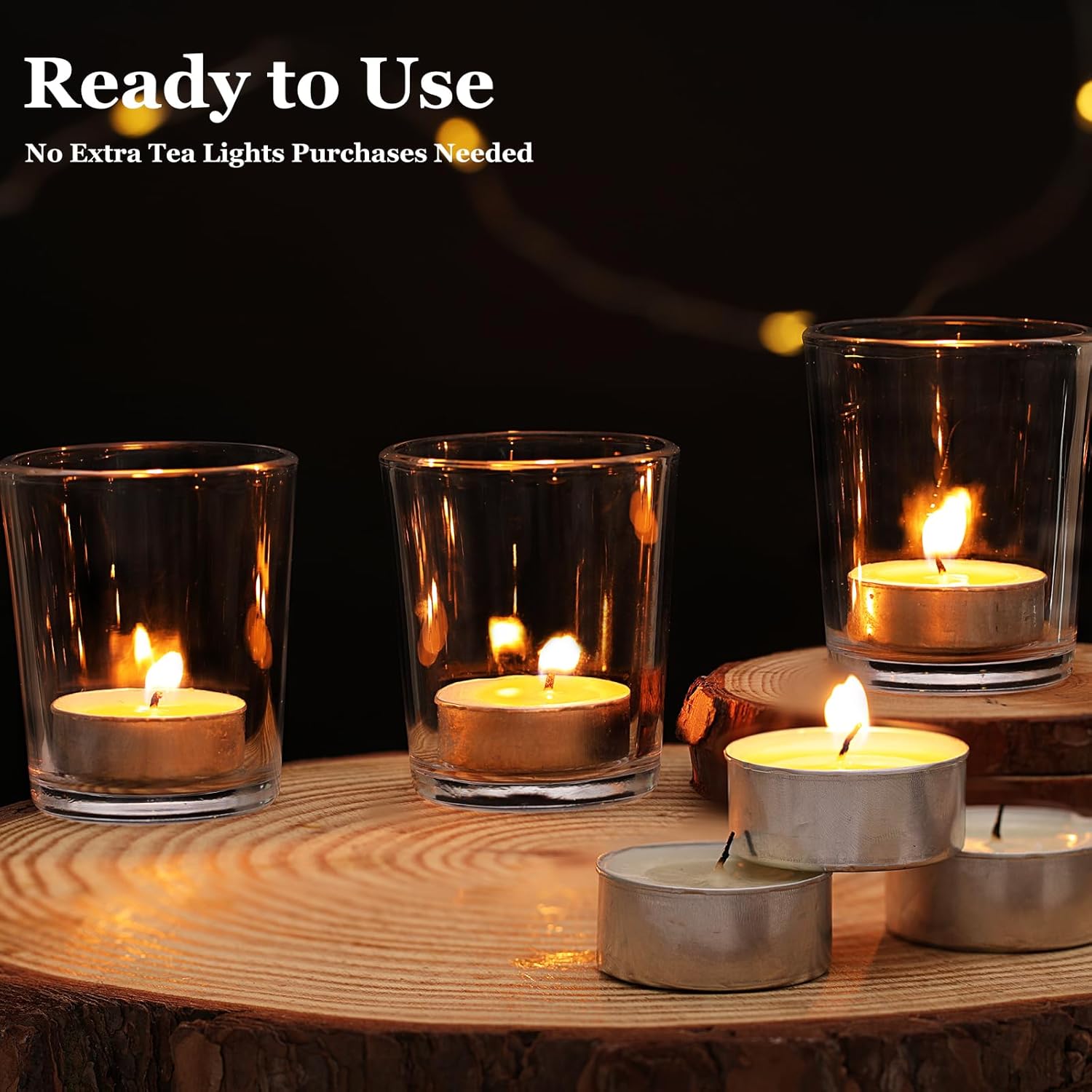 Letine 12-Pack Clear Votive Candle Holders - Glass Tea Light Holders with 12 Tea Lights for Wedding Decor, Bulk Votive Holders for Home Table Decor/Christmas & Thanksgiving