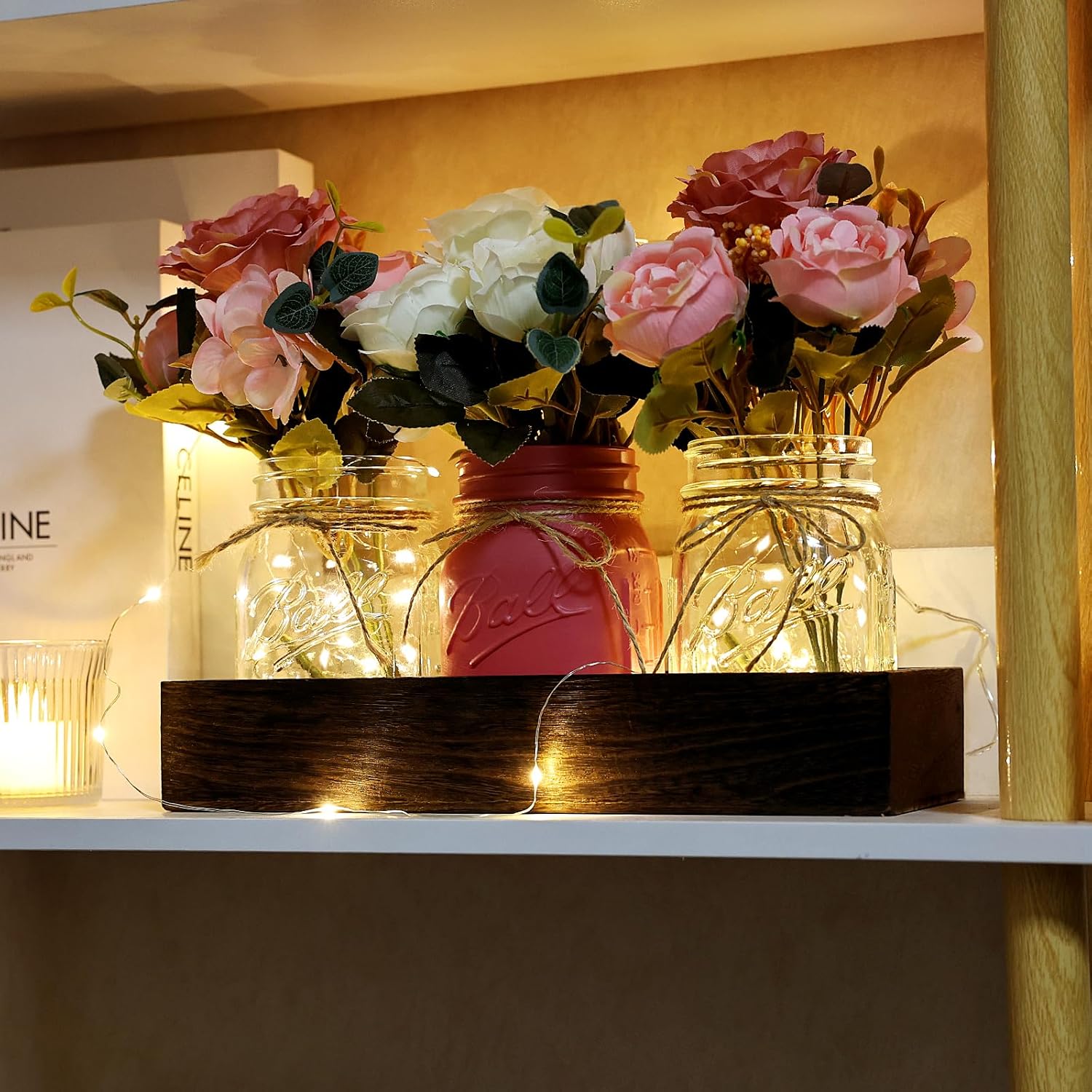 - Ambient Lighting: By day, the sunlit jars highlight the vivid peonies; by night, the soft radiance of the LED fairy lights (batteries included) casts a dreamy glow. Ideal for mason jars centerpieces for the dining table that transition from brunch to candlelit evenings.