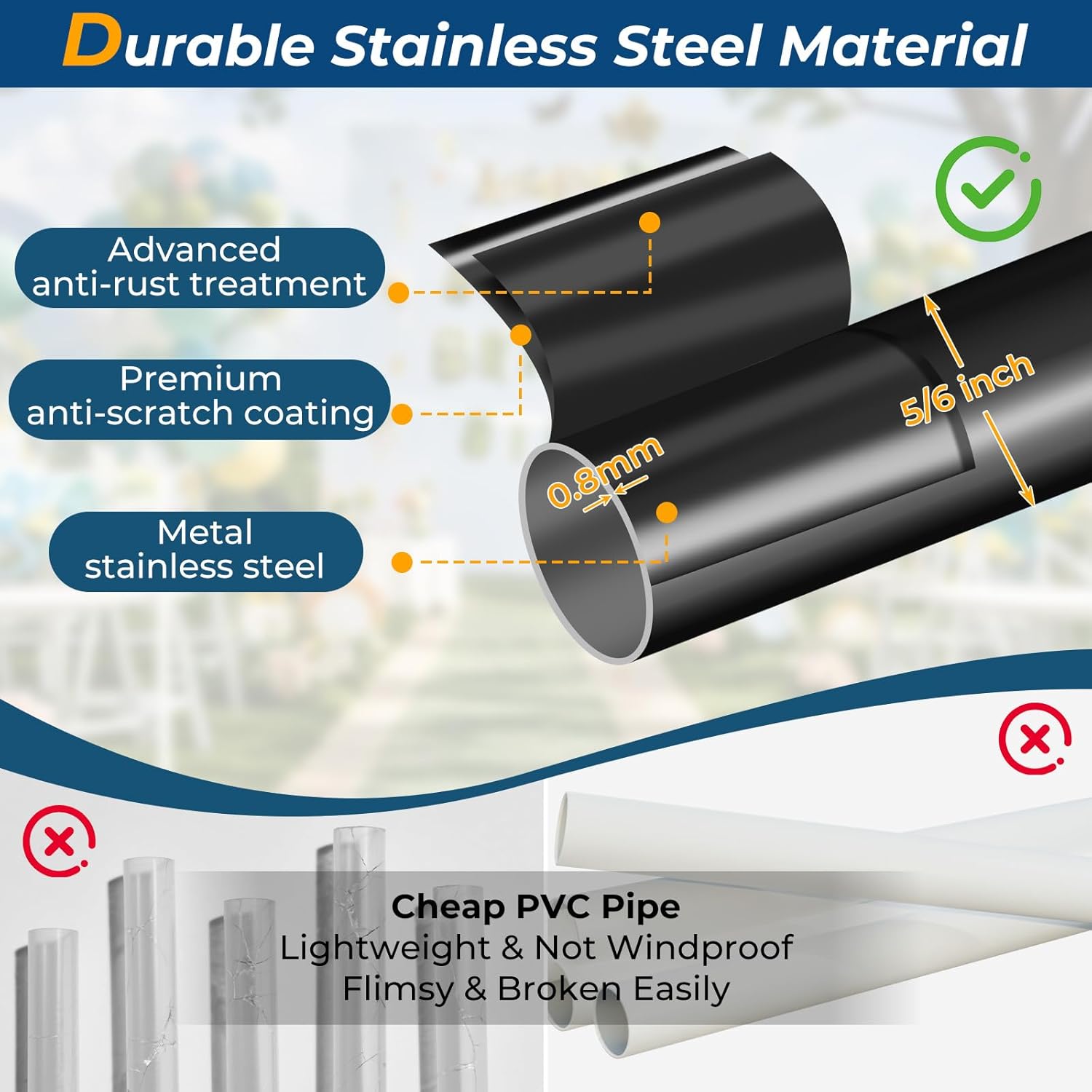 - ✅ Heavy-Duty Stainless Steel Metal Poles: The support poles for the balloon column stand are made of high-strength metal material with a diameter of 20 millimeters, offering greater stability compared to plastic materials. The splicing design provides 200% greater durability than one-piece telescoping designs, making them less prone to bending or breaking during use.