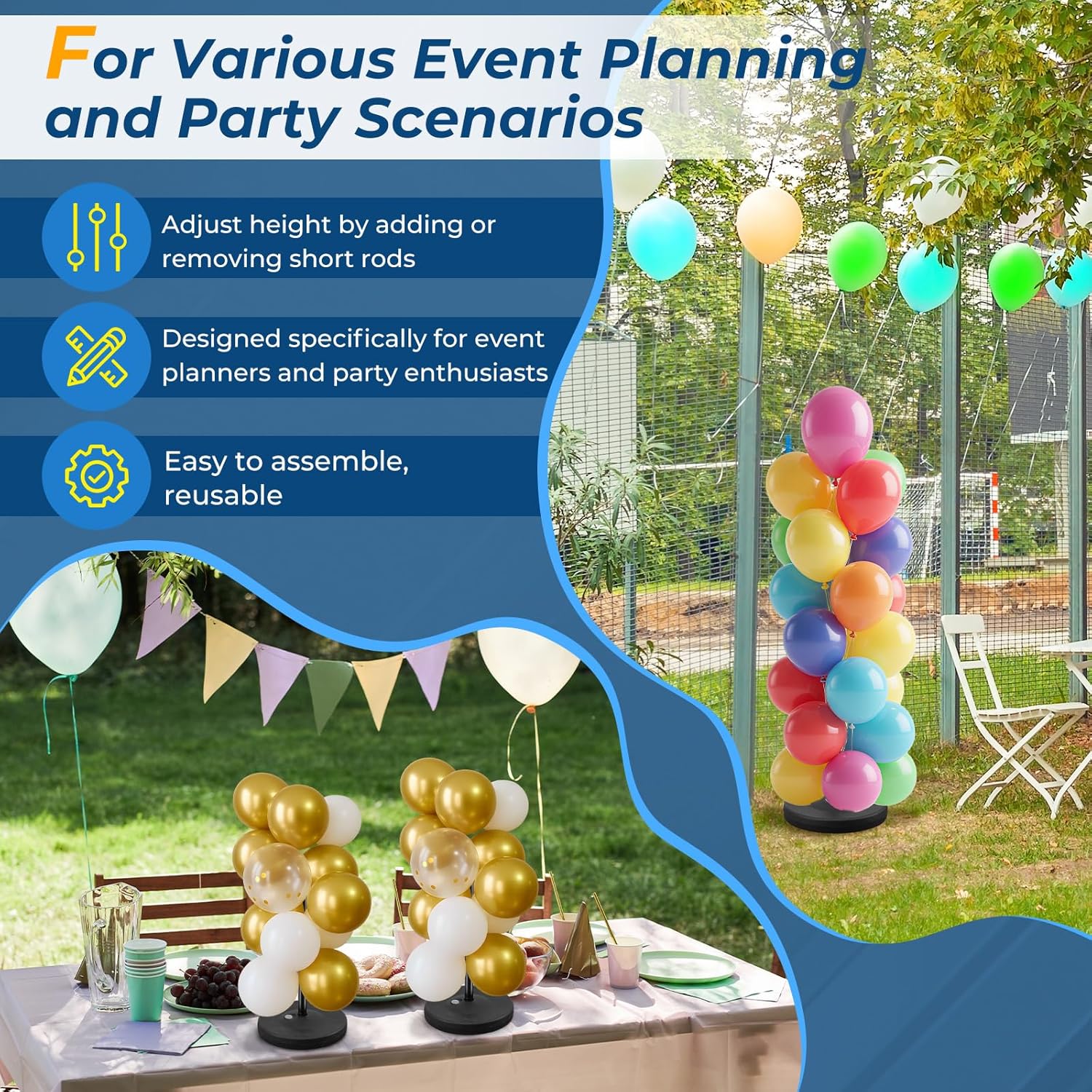 - ✅ Event Decorations: The balloon towers set of 2 is the perfect decoration for birthday parties, weddings, anniversaries, events, mall openings, graduations, baby showers for boys/girls, gender reveal parties, Halloween, and Christmas decorations.
