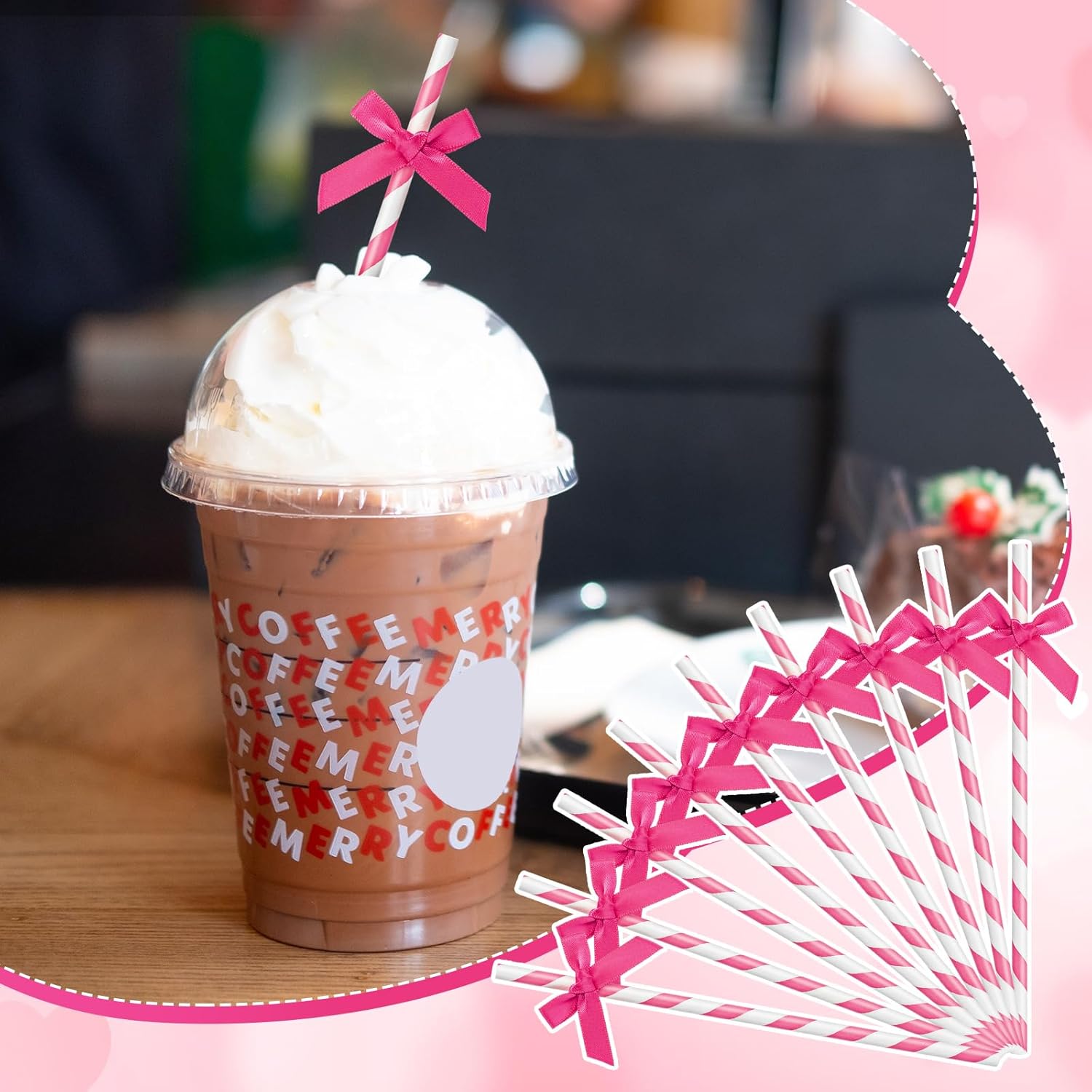 - Rose Red Theme Design: our paper straws have a rose red and white striped design pattern and bow; The style is novel, interesting and elegant, with a strong festive party atmosphere, while making your drinks look more tempting; The bow on the straw has been glued together with glue, so you don't have to waste extra time making it, which can save you time and energy