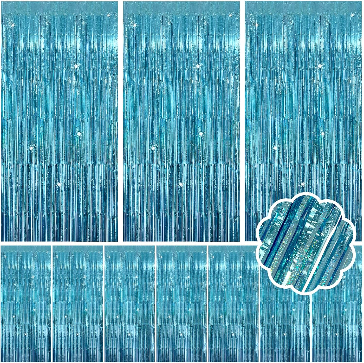 10 Pack Blue Streamers Party Decorations Tinsel Backdrop Glitter Blue Foil Fringe Party Decor for Ocean Theme Birthday Party Baby Shower Halloween