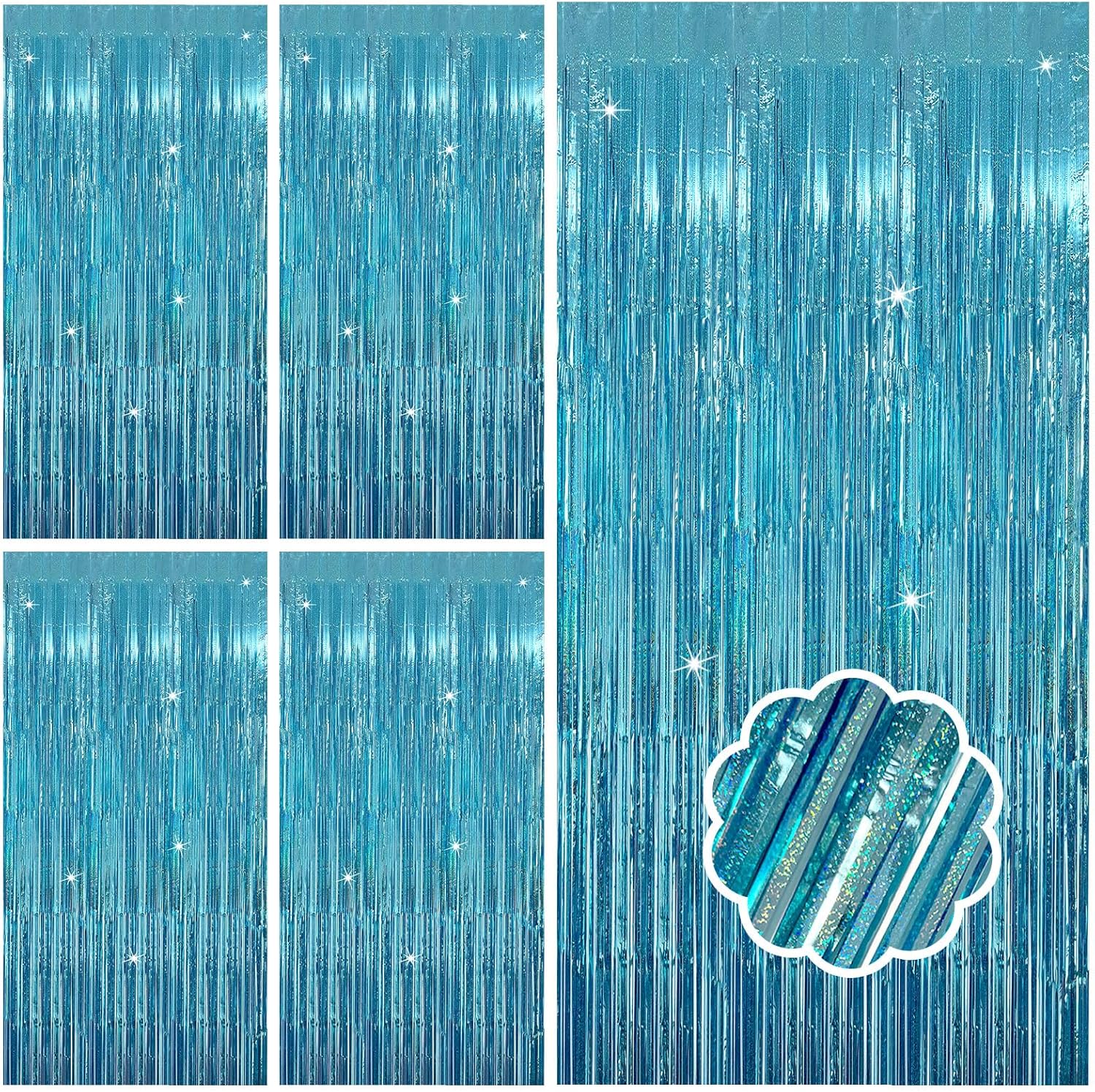 5 Pack Blue Tinsel Streamers Foil Fringe Curtains Backdrop for Baby Shower Graduation Gender Reveal Ocean Disco Theme Party Decorations
