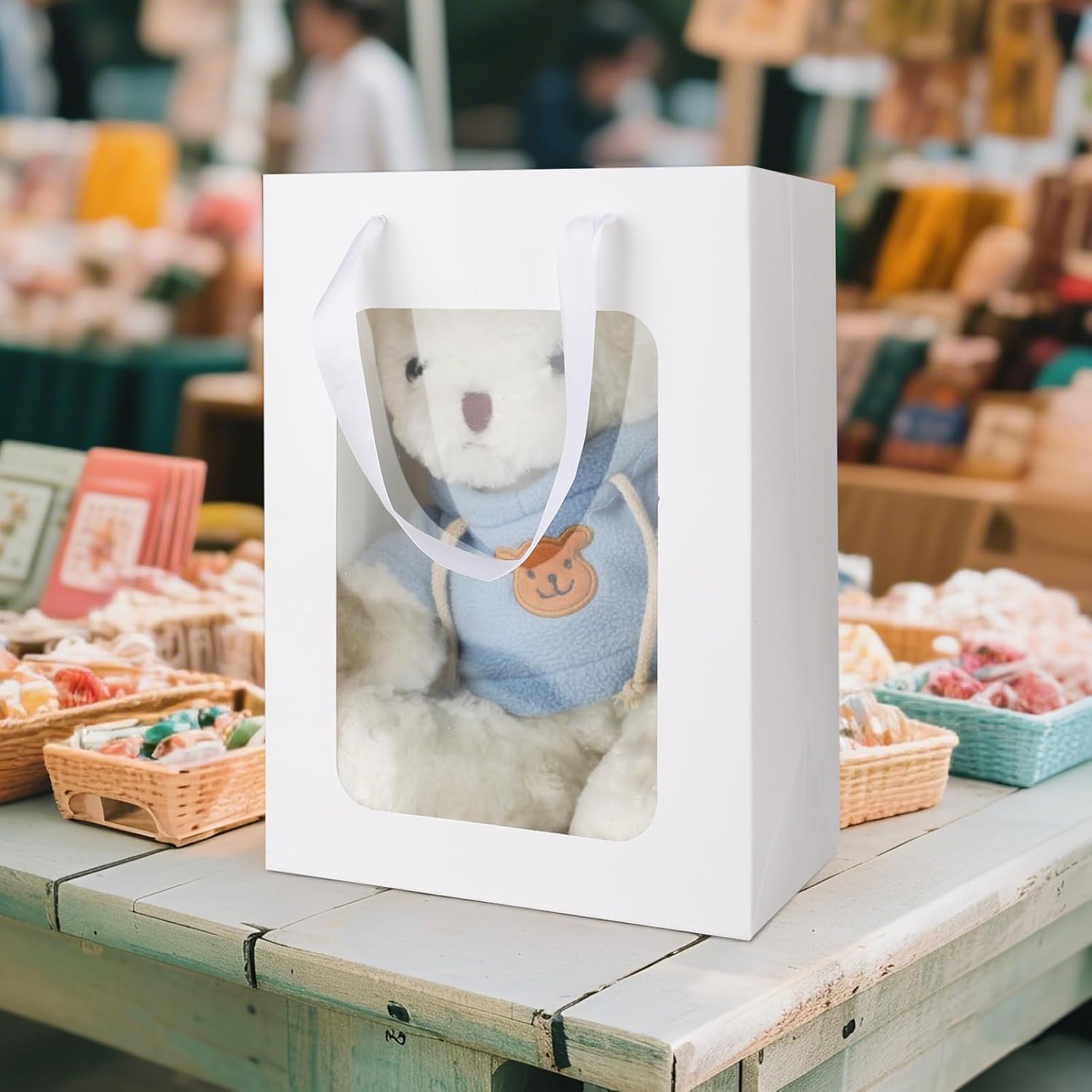 MOXARYSU 6 Pcs White Gift Bags with Clear Window: 9.8x5.1x7.1 Inch Medium Kraft Paper Bags with Handle For Party Business Birthday Wedding (White,6p)