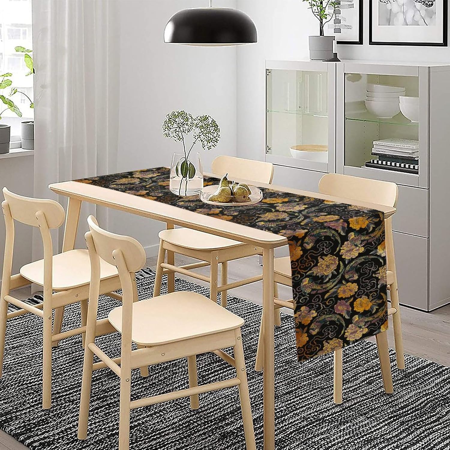 Japanese Table Runner Retro Flowers Oriental Tradition Kio Fish Art Printed Burlap Runner Home Kitchen Dining Table Living Room Decor Fabric 1 Panel W13xL108in