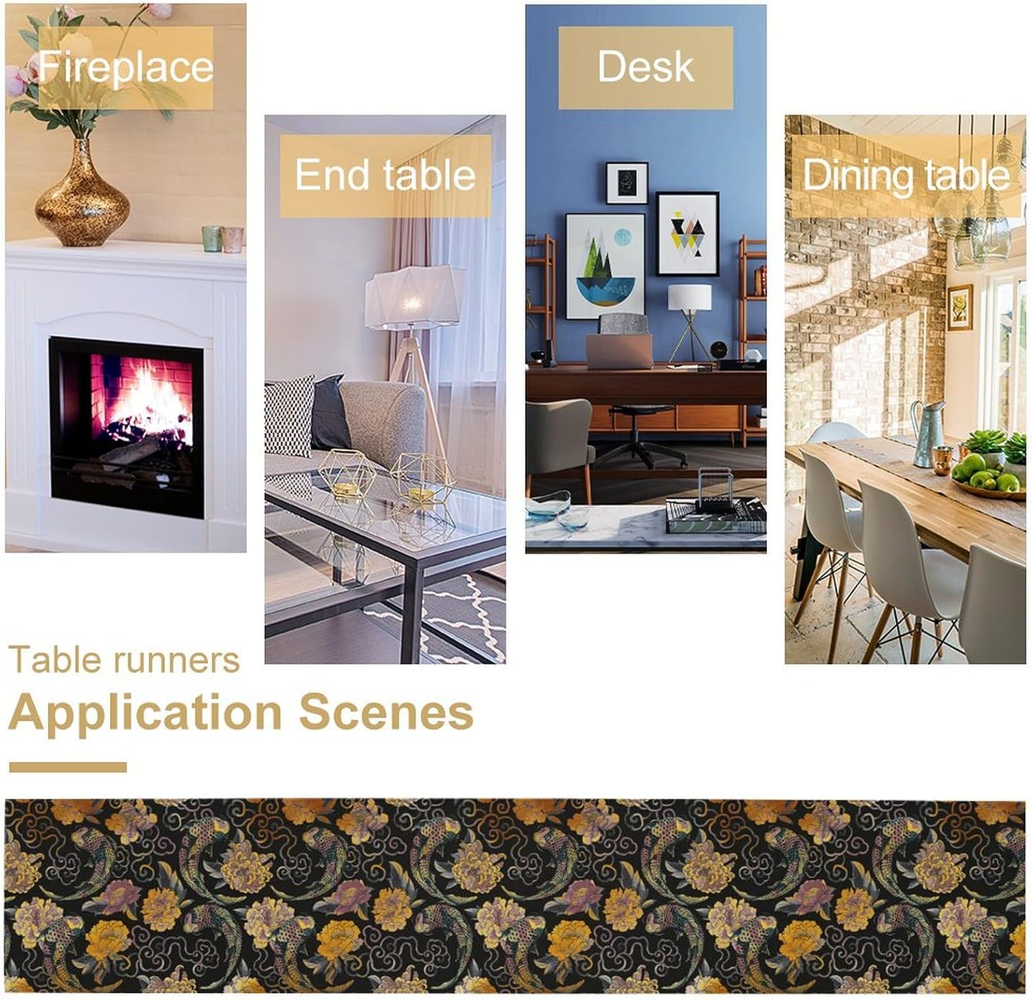 Japanese Table Runner Retro Flowers Oriental Tradition Kio Fish Art Printed Burlap Runner Home Kitchen Dining Table Living Room Decor Fabric 1 Panel W13xL60in