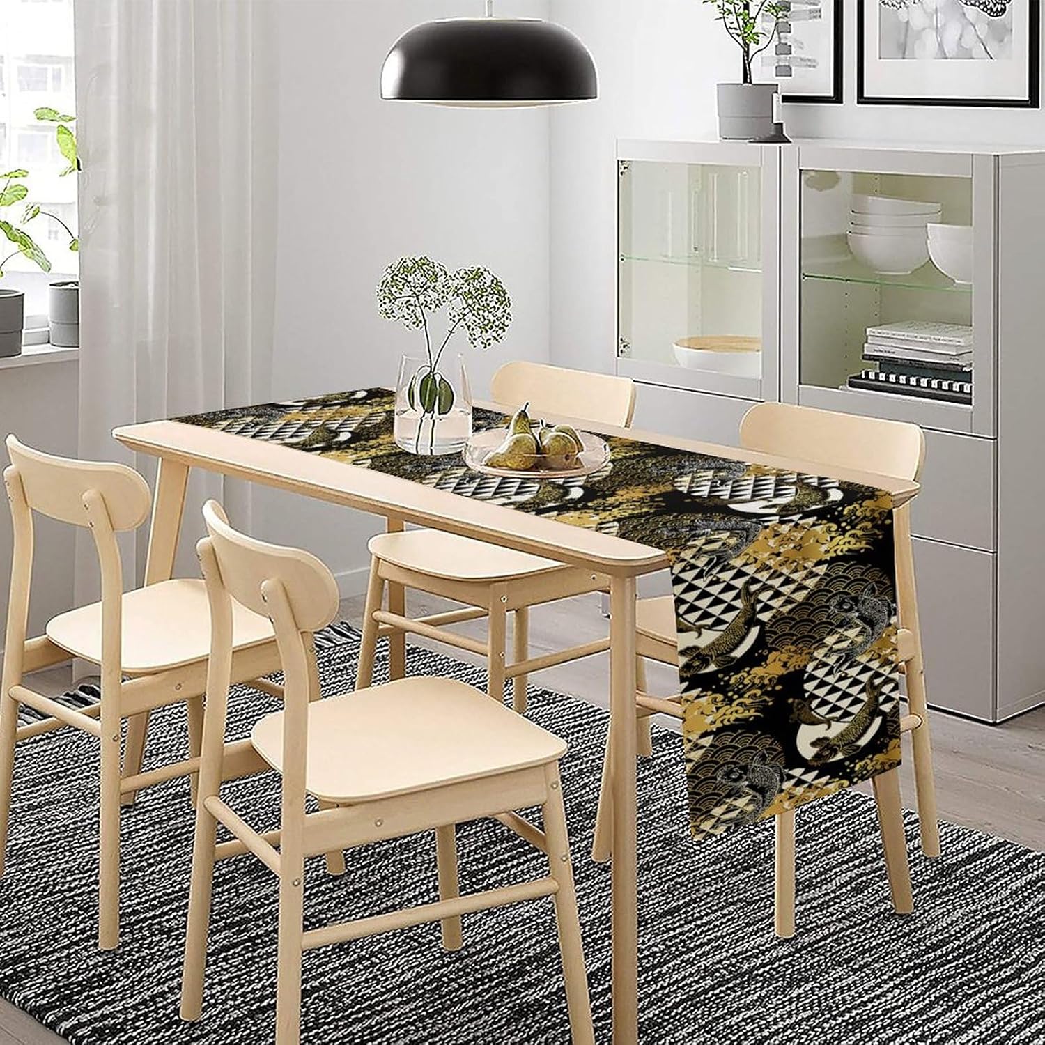 Japanese Table Runner Oriental Tradition Kio Fish Gold Art Printed Burlap Runner Home Kitchen Dining Table Living Room Decor Fabric 1 Panel W13xL90in