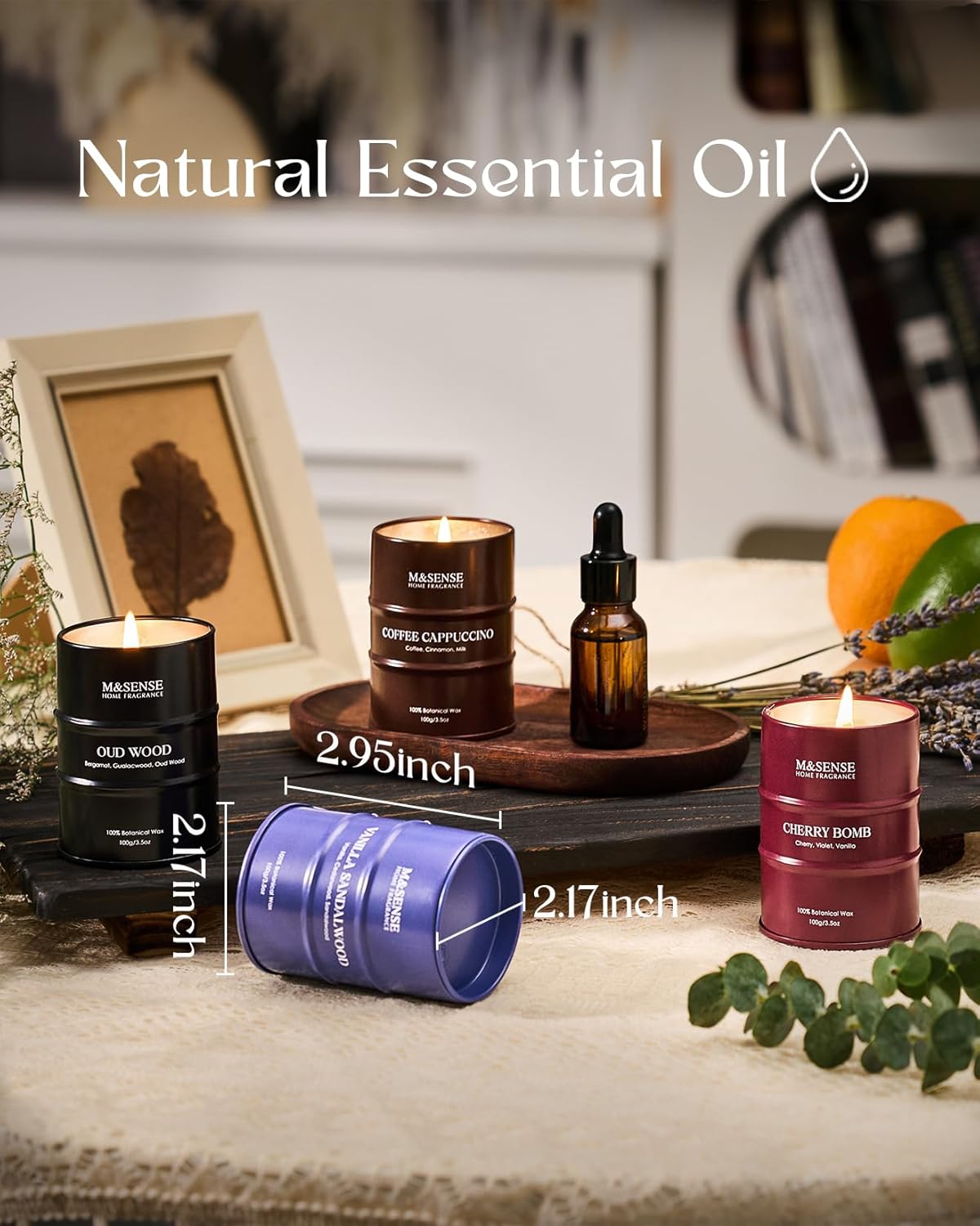 - 💚 Sustainable Material - M&SENSE candles are all crafted with the finest and most natural ingredients. Using high-end vegetable wax and unbleached cotton wicks in a reusable and recyclable tin. Packaged in recycled honeycomb paper and cardboard box for a more sustainable future.