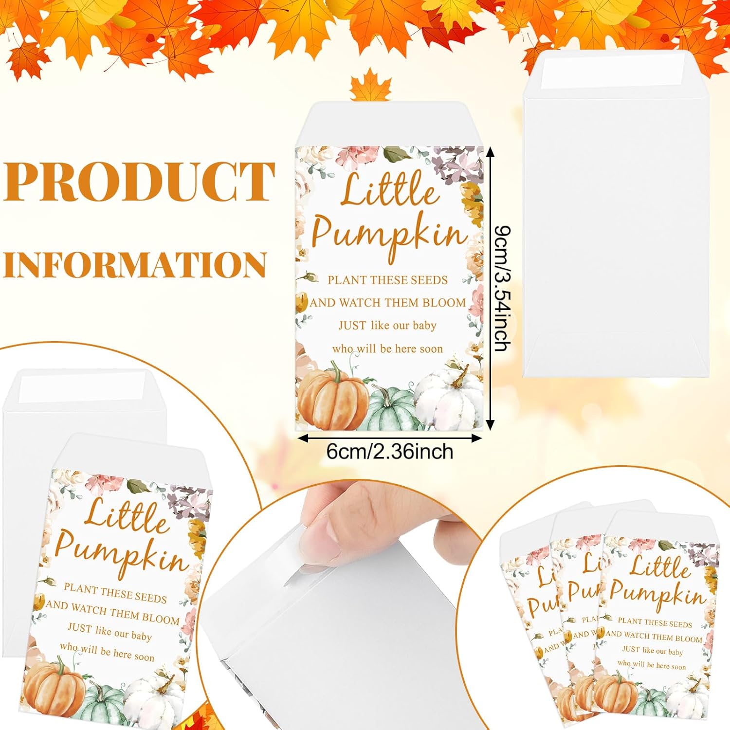 - Elegant Presentation and Easy to Use: our little pumpkin baby shower favors for guests are presented in an organza bag; Each seed bag has glue on the back for easy sealing, while the hard quality card can be personalized with messages; Please note that seeds are not included in the package