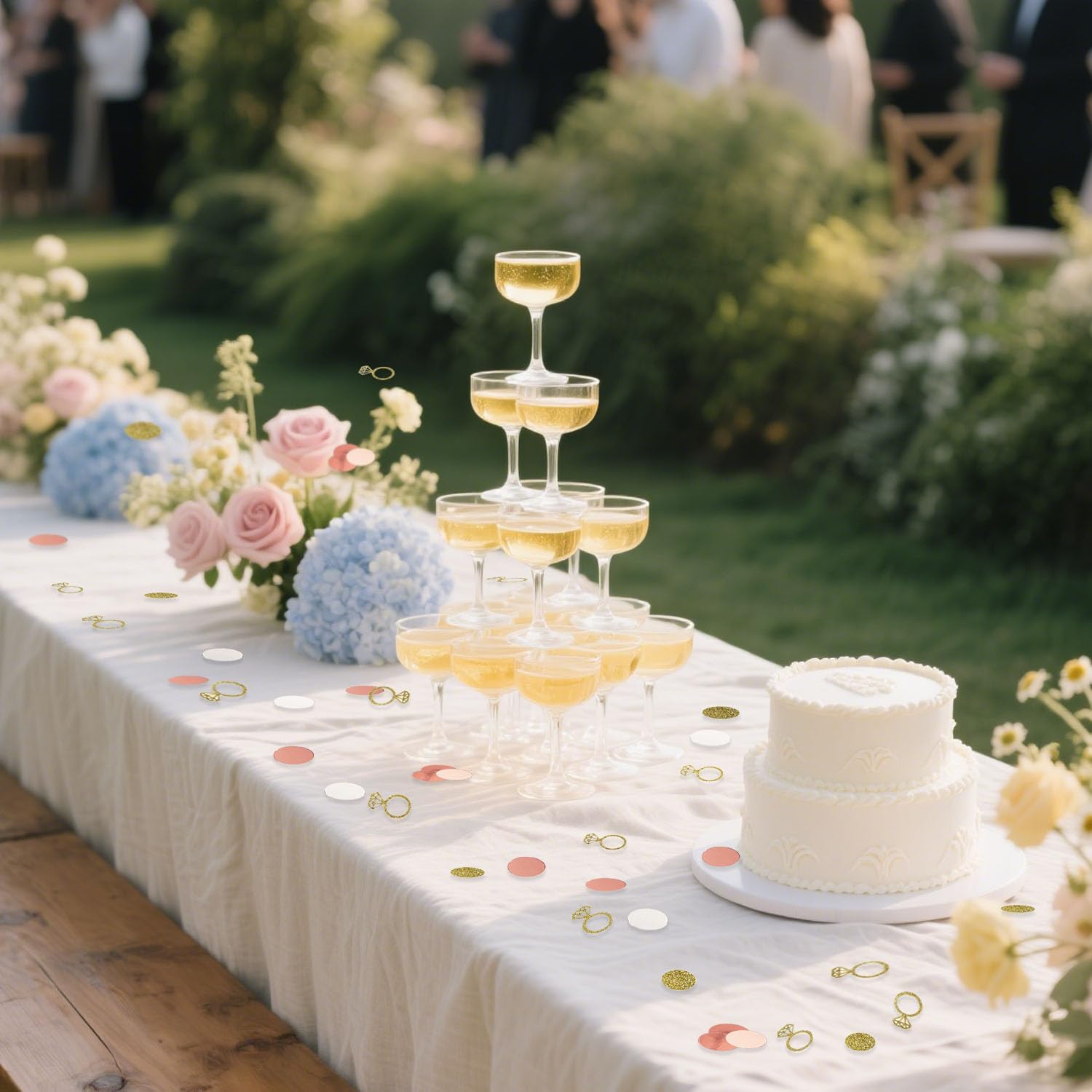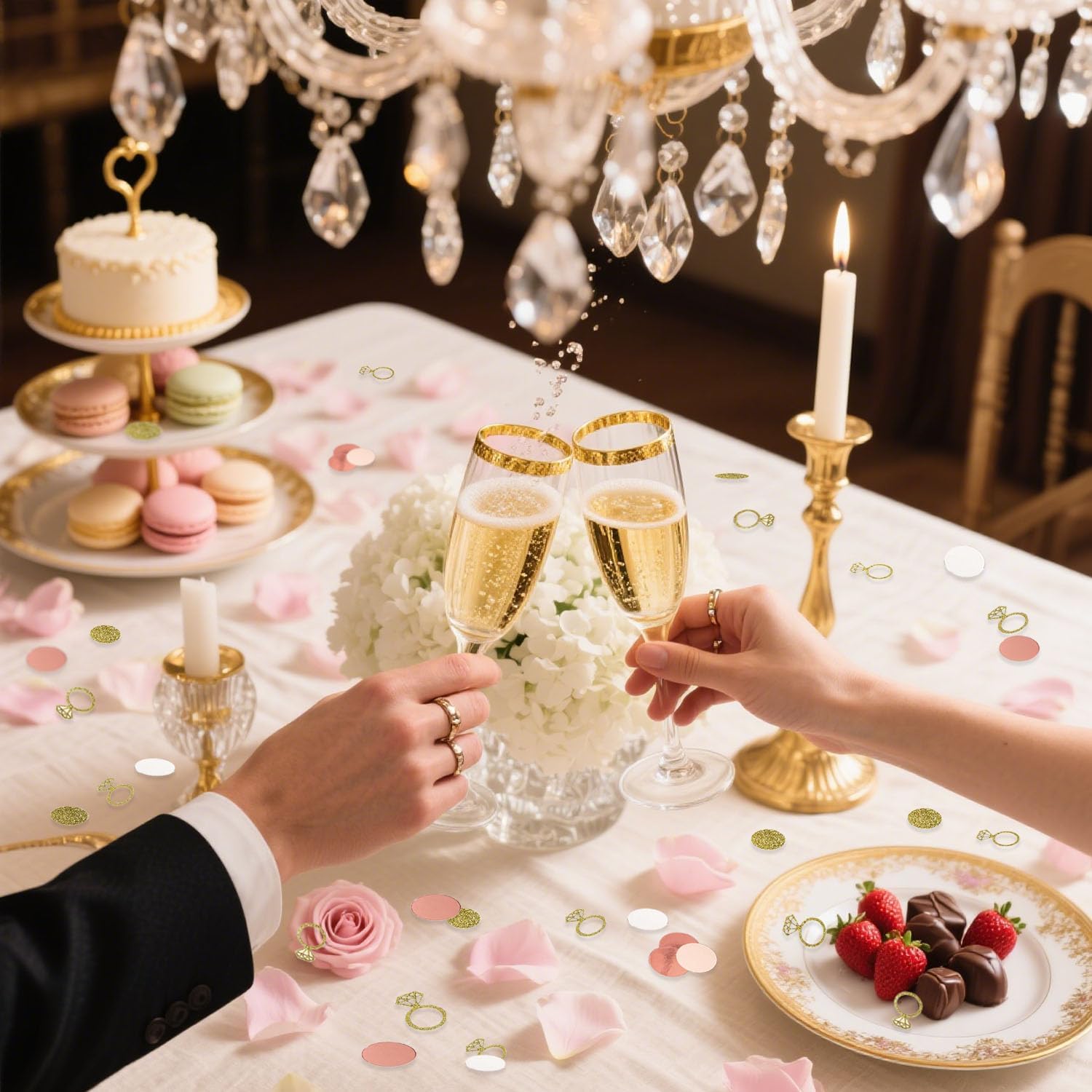 200 Pcs Rose Gold Glitter Wedding Table Confetti, Bridal Shower Decorations, Glitter Paper Diamonds Ring Confetti, Engagement Party Scatter