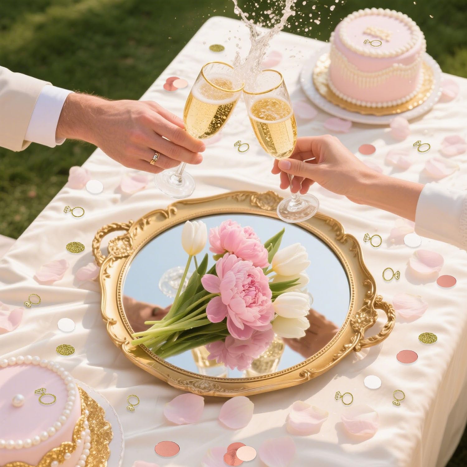 - PACKAGE INCLUDES-- gold and white glitter diamond ring confetti dots, gold conffeti dots, rose gold confetti dots, White confetti dots, pink confetti dots