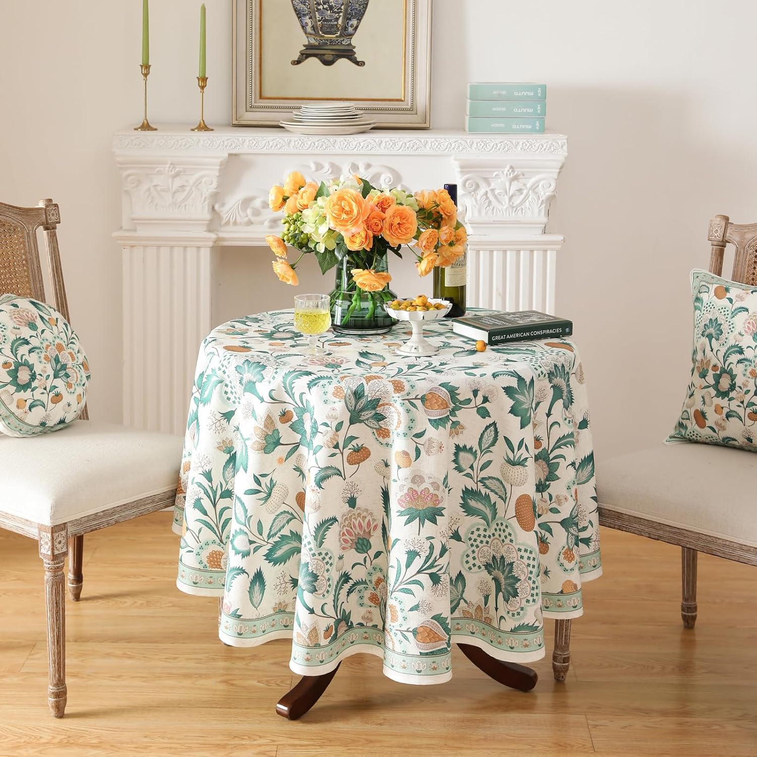 patdrea Designer Small Vintage Green Round Table Cloth,French Floral Country Linen Durable Tablecloth,Wrinkle Free Cover for Kitchen Dining,Christmas,Thanksgiving,Diameter 55"-Tree Life