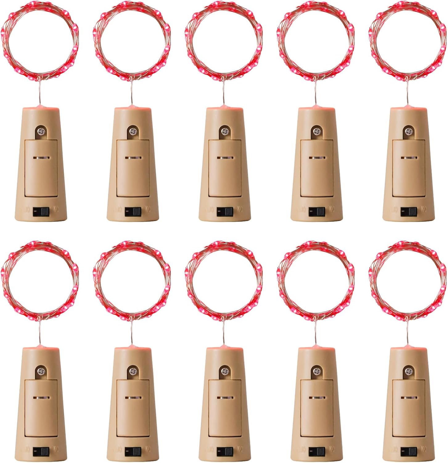- 20LED Bottle Lights: The Aluan cork lights is 2m/7ft long, 10 strands in 1 pack, each strand has 20 red LED beads in total, space between per LED: 10 cm/ 4 in. The mini LED lights is steady on and bright enough for illumination and decoration, it will not flash to your eyes, ideal for indoor & outdoor using