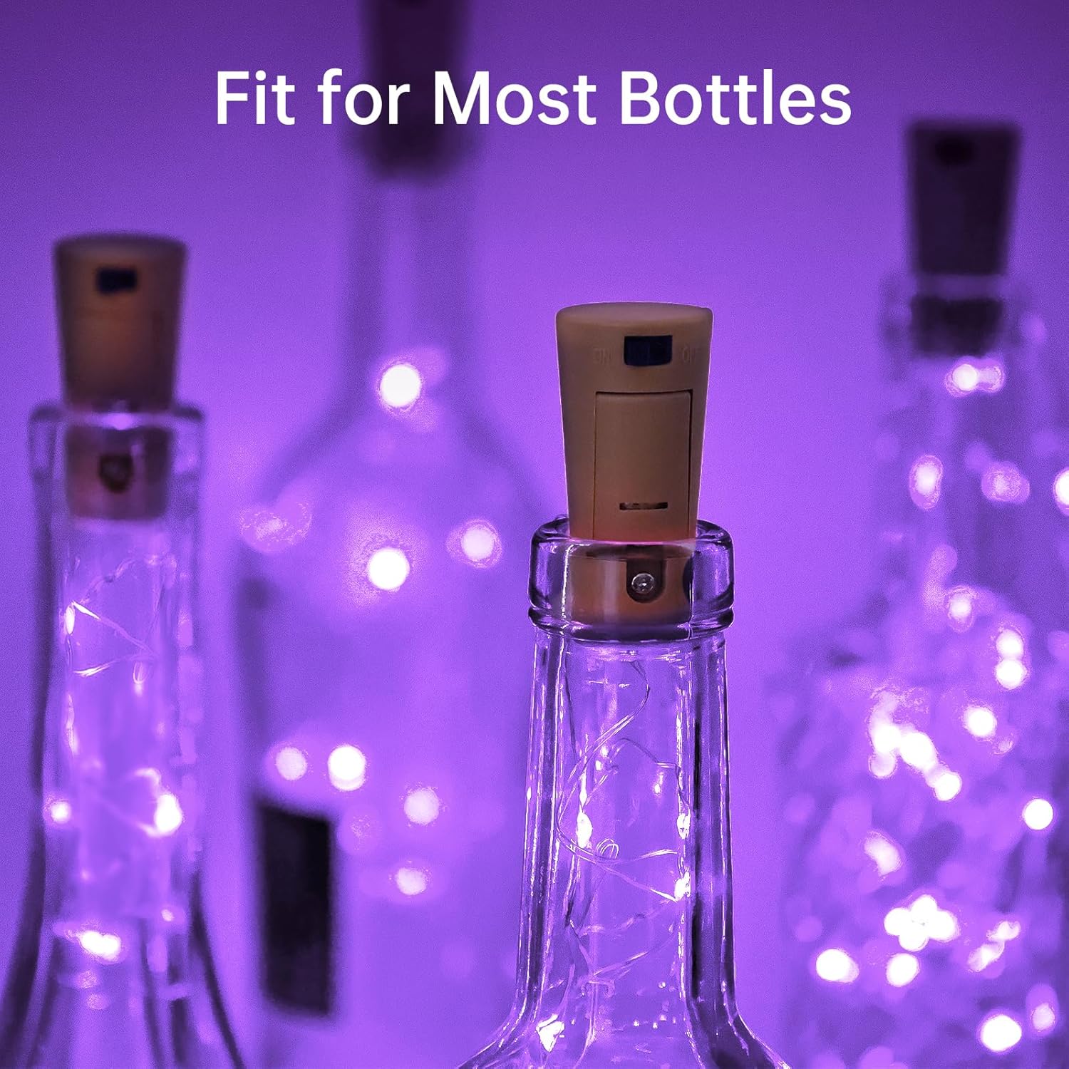 - Cork Design: The diameter of the cork is from 0.6 in to 0.9 in, which is the universal size for most wine bottles. The small LED lights fit for glass, liquor, beer, whiskey bottles and other kind of bottles. Toggle the button on the cork to control on/off, easy to operate