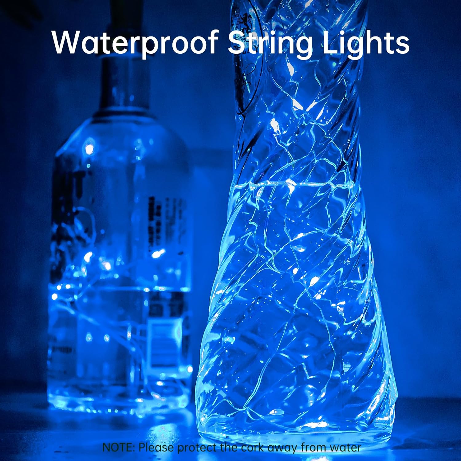 - 20LED Bottle Lights: The Christmas lights is 6.6 ft long, 10 strands in 1 pack, each strand has 20 blue LED beads in total, space between per LED is 4 in. The LED fairy lights is steady on and will not flash to your eyes, it's fun for decorating bottles
