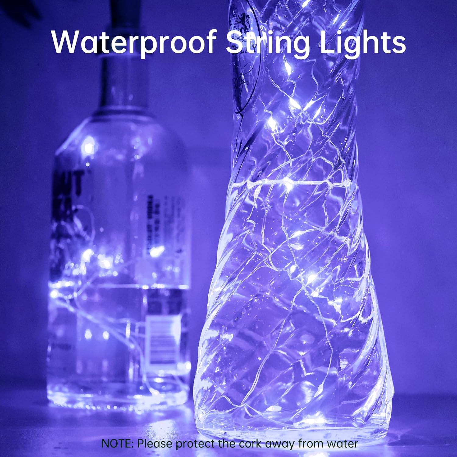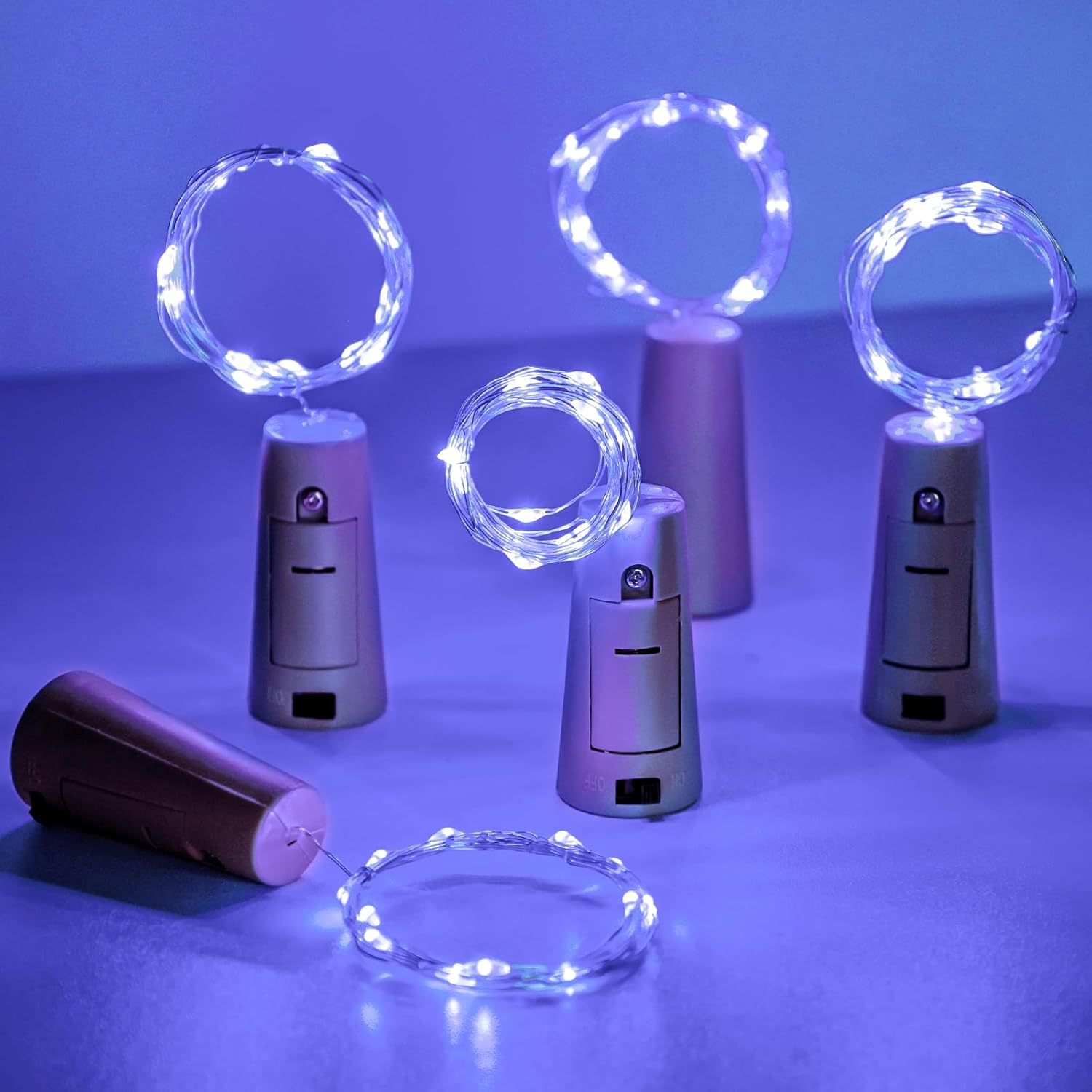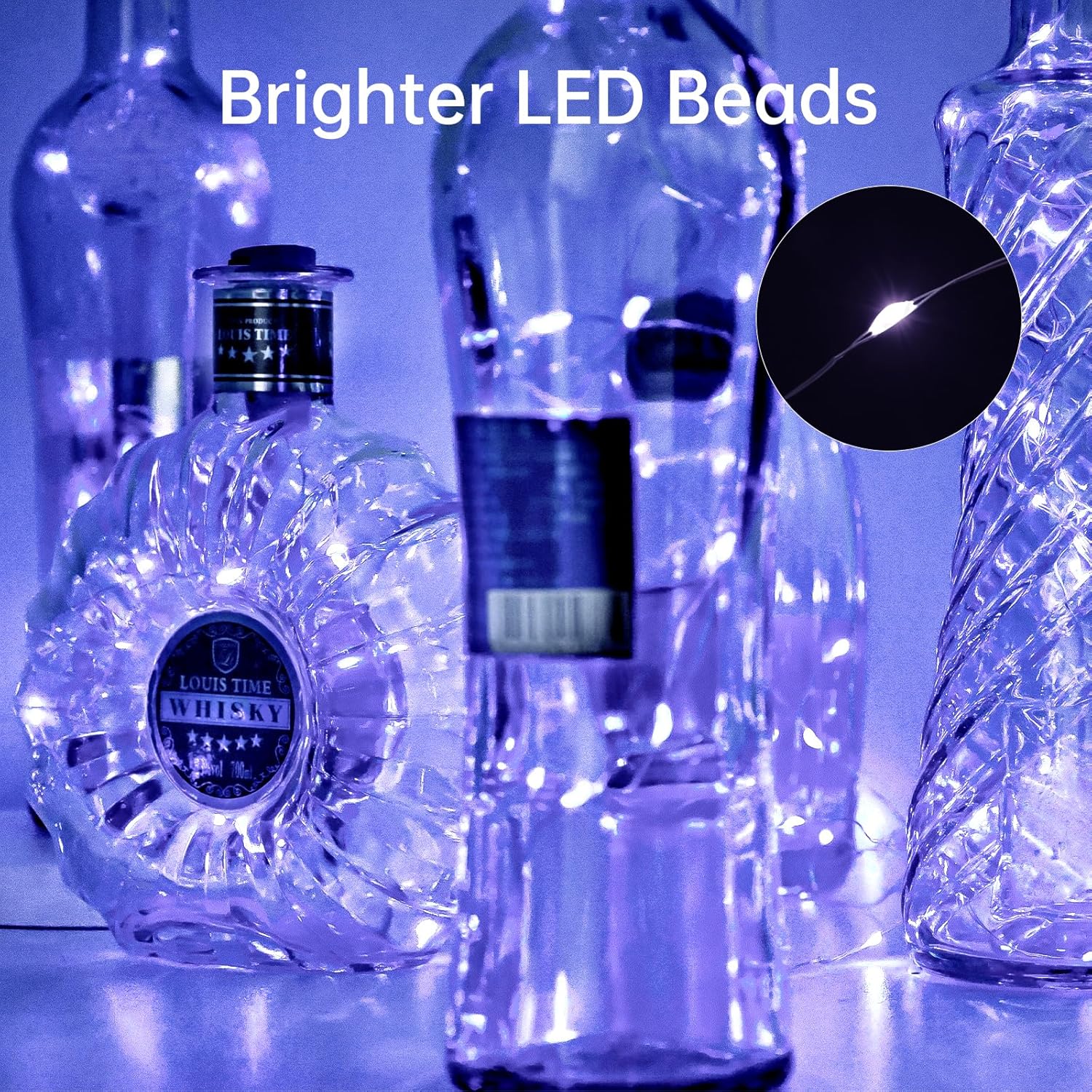 - 20LED Fairy Lights: The wine bottle lights with cork is 2m/ 6.6ft long, 10 strands in 1 pack, each strand has 20 cool white LED beads in total, space between per LED: 10 cm/ 4 in. The 20 LED lights are bright enough for illumination and decoration, but will not flash to your eyes, ideal for indoor & outdoor using
