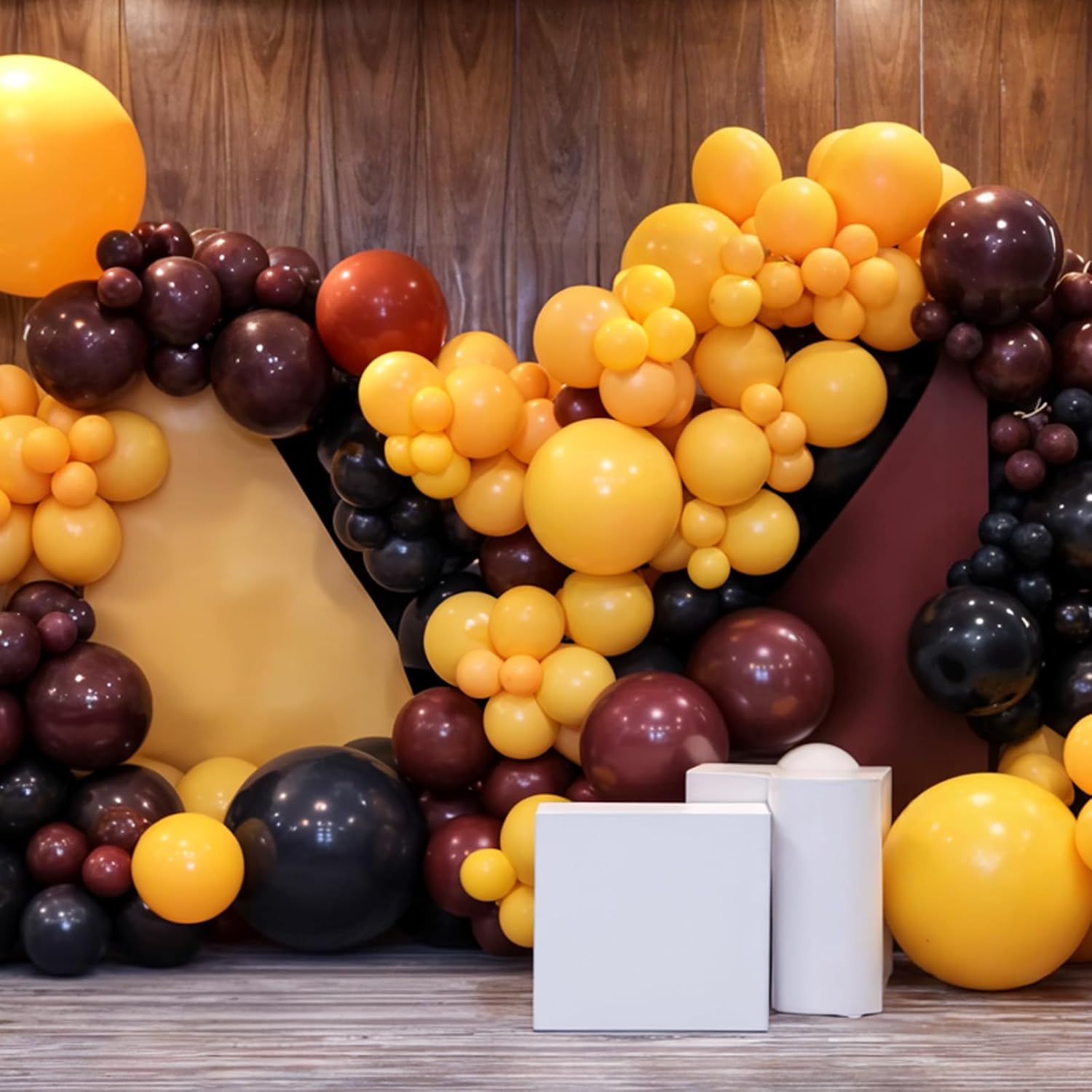 - Premium Look and Feel: Made from high-quality latex, these burgundy black yellow balloons inflate with a smooth, glossy surface and maintain their shape longer when properly inflated. Whether you're filling a room or building a balloon arch, their consistent performance makes party setup easier and more enjoyable. Keep the festive mood bright during your event.