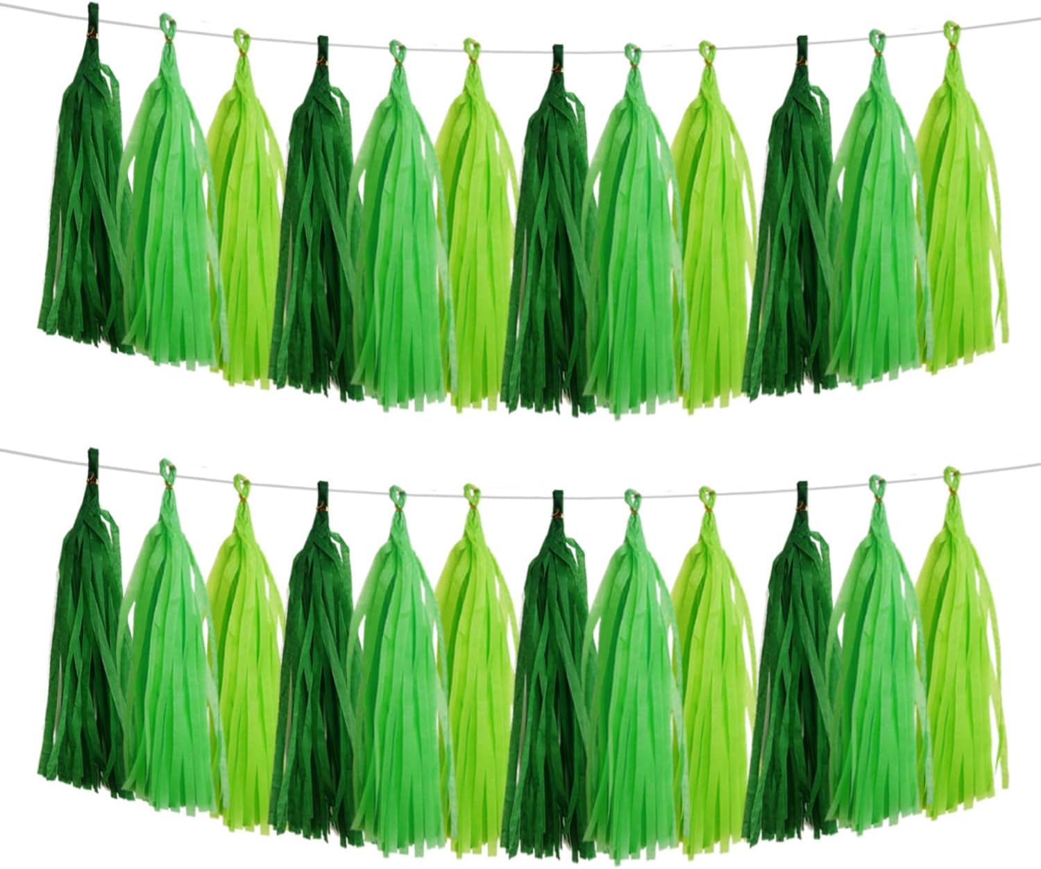 GAKA Dark Green and Light Green Tissue Paper Tassel(3 Colors),Paper Tassel Garland Banner for Jungle Birthday Party Decor Supplies,15 PC